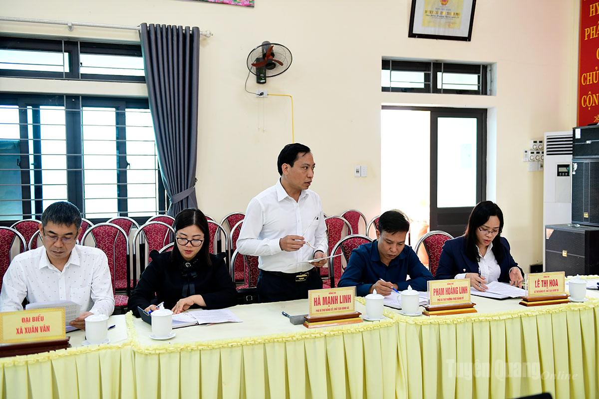 | Đồng chí Mai Đức Thông, Ủy viên BCH Đảng bộ tỉnh, thành viên Ban Chỉ đạo bầu cử đại biểu Quốc hội khóa XVI và đại biểu HĐND các cấp nhiệm kỳ 2026 - 2031, Ủy viên Ủy ban Bầu cử tỉnh, Giám đốc Báo và phát thanh, truyền hình Tuyên Quang phát biểu tại buổi làm việc với xã Xuân Vân. |