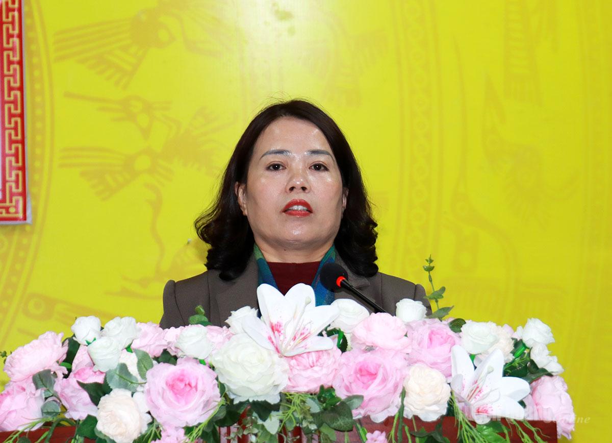 | Đồng chí Lý Thị Lan, Trưởng đoàn đại biểu Quốc hội khóa XV tỉnh phát biểu tại buổi tiếp xúc. |