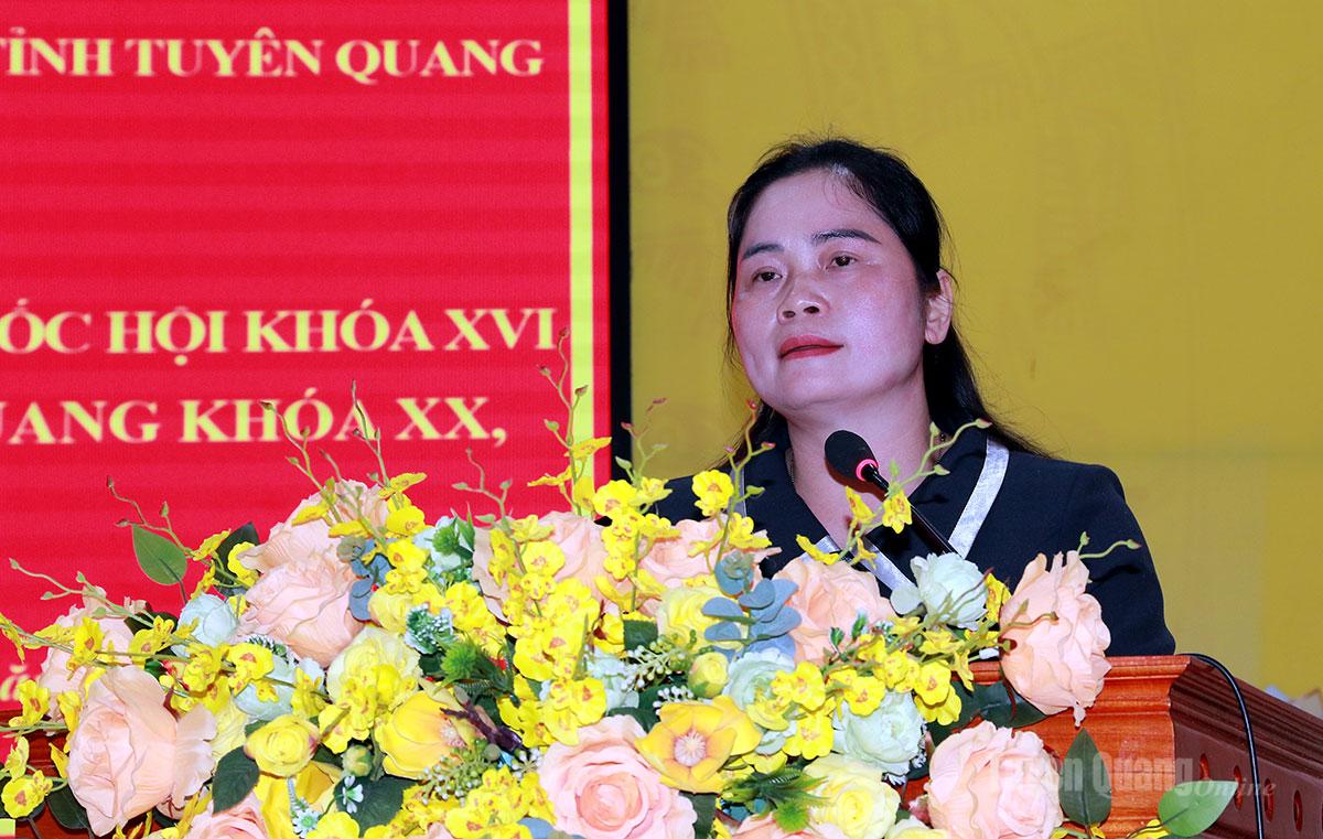 | Ứng cử viên đại biểu Quốc hội khóa XVI Ma Thị Thúy, Ủy viên Ban Chấp hành Đảng bộ tỉnh, Ủy viên Ban Chấp hành Đảng bộ các cơ quan Đảng tỉnh, Phó Trưởng đoàn ĐBQH hoạt động chuyên trách khóa XV tỉnh, Ủy viên Hội đồng Dân tộc của Quốc hội trình bày chương trình hành động cá nhân. |