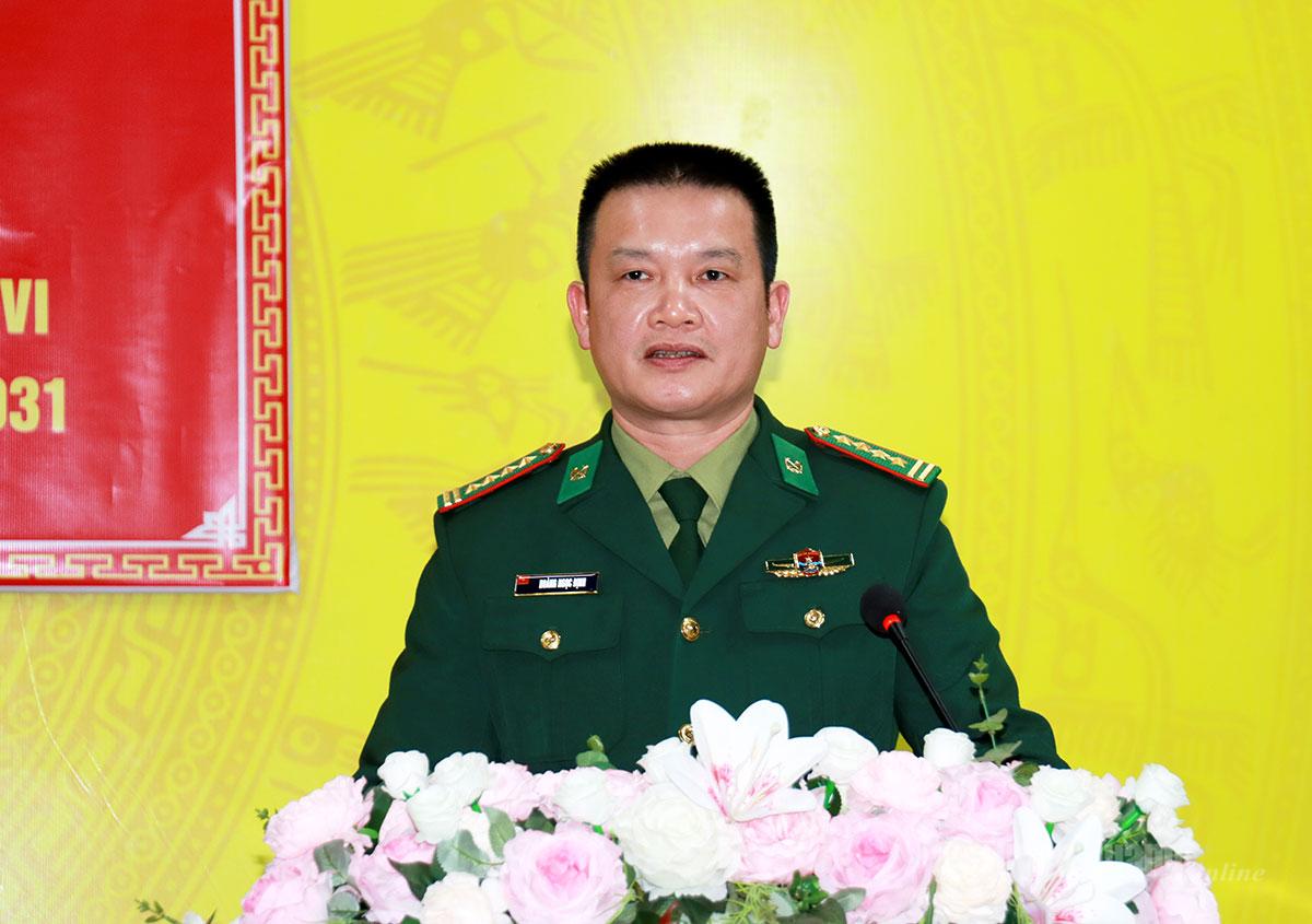 | Ứng cử viên đại biểu Quốc hội Hoàng Ngọc Định, Phó Chỉ huy trưởng Bộ Chỉ huy Quân sự tỉnh kiêm Chỉ huy trưởng Ban Chỉ huy Bộ đội Biên phòng tỉnh trình bày chương trình hành động cá nhân. |