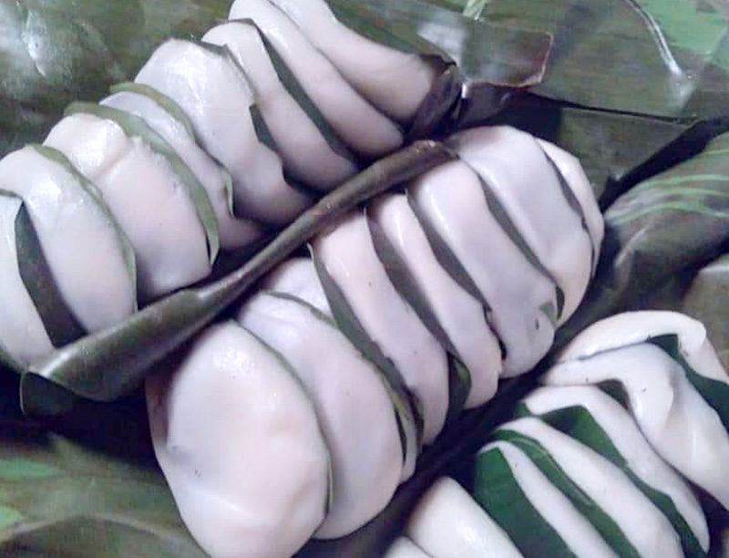 Hạt vừng đem rang trên lửa nhỏ, luôn phải đảo cho vừng vừa chín mà không cháy. Khi vừng chín, tỏa ra mùi thơm nhẹ thì bắt đầu mang giã nhỏ. Thế nhưng bánh dày có nhân thơm ngon không chỉ bởi hạt vừng mà còn bởi một nguyên liệu không thể thiếu đó chính là mật mía. Người Tày không trộn vừng đen với nước đường đã nấu để làm nhân bánh, bởi như thế nhân bánh sẽ mất đi mùi thơm mà dùng mật mía để hòa với vừng đen. Mía được dóc vỏ, đem ép lấy nước sau đó đem nấu cho đến khi quánh và sánh lại rồi được người Tày dự trữ cẩn thận trong can, chai nhựa dùng để làm bánh dày quanh năm. Người Tày thường gói bánh dày nhân vừng đen bằng lá chuối đã được hơ qua lửa cho mềm, dai và có mùi thơm.
