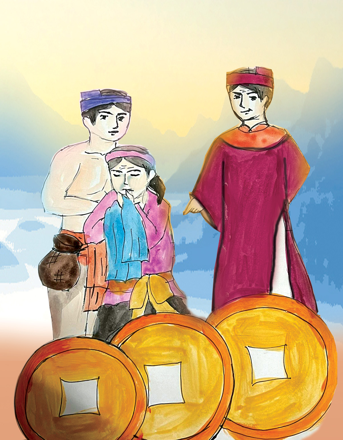 Thế là, một bước, vợ chồng anh tiều phu trở nên sang cả.