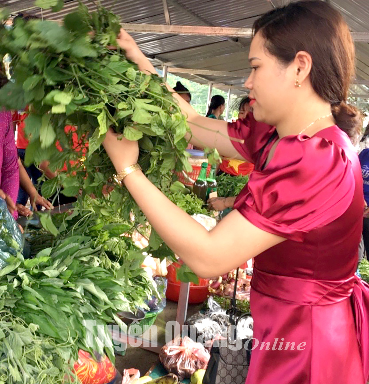 Khách chọn mua giảo cổ lam tại phiên chợ xã Phúc Sơn (Lâm Bình).
