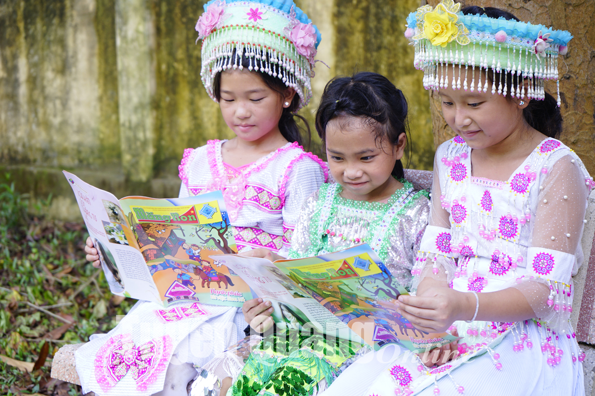 Học sinh trường Tiểu học Đông Thọ 2, xã Đông Thọ (Sơn Dương) tìm hiểu ca dao, tục ngữ qua sách báo.