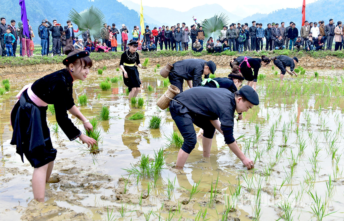 Kỹ thuật cấy lúa nước của đồng bào Tày thị trấn Lăng Can.