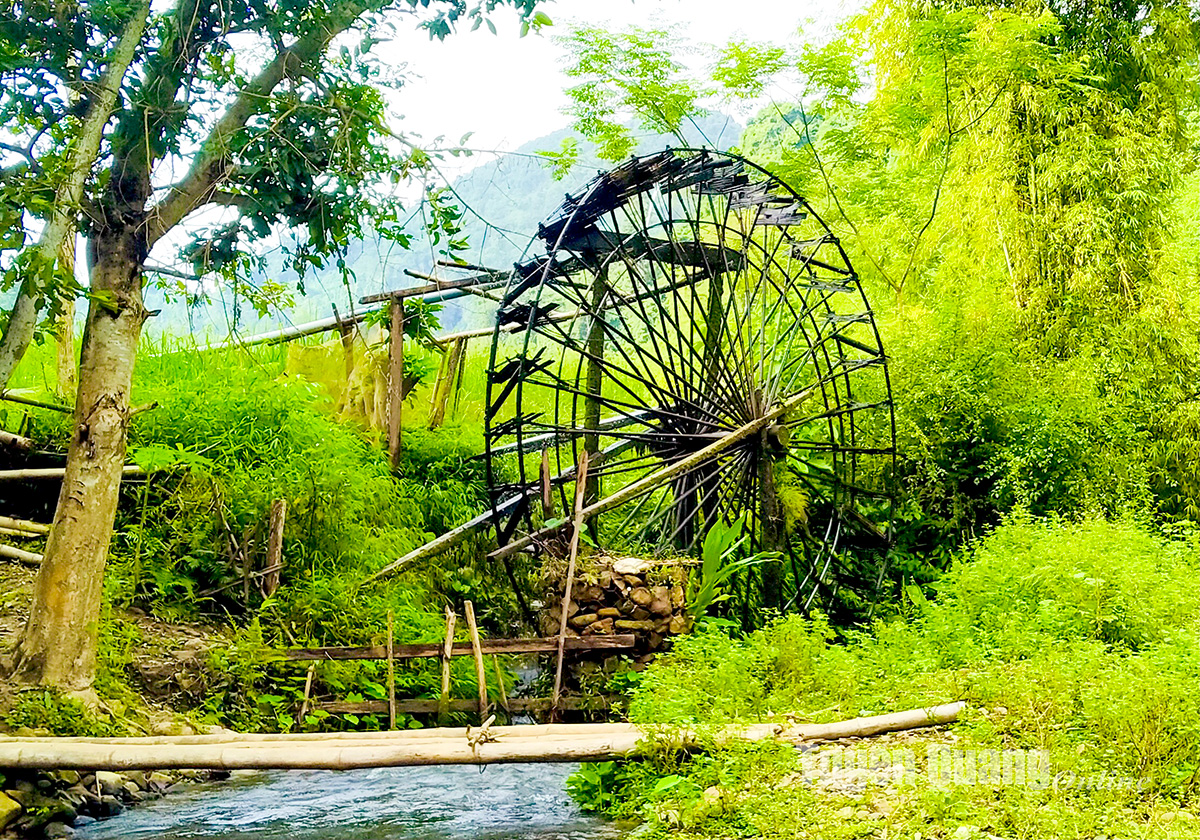 Chiếc cọn dẫn nước quen thuộc từ suối lên các thửa ruộng của người Tày xứ Tuyên.