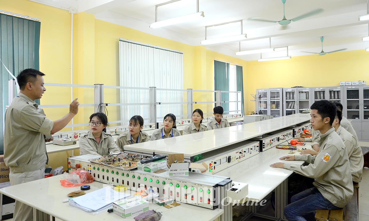Các sinh viên nữ theo học lớp Điện công nghiệp tại trường Cao đẳng nghề Kỹ thuật - Công nghệ Tuyên Quang.
