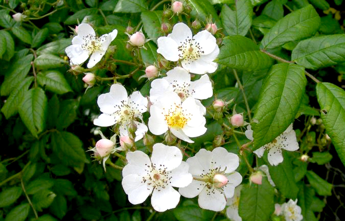 Rosa cymosa (Tầm xuân - hồng choắt - hồng roi), Rosa multiflora (Tầm xuân đa hoa). Đây là loài hoa có cành cây đầy gai góc và màu hoa thì từ trắng đến màu hường nhạt không có loài nào nở ra xanh biếc.