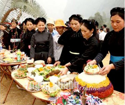 Xôi ngũ sắc (còn gọi là cơm đen cơm đỏ) là món ăn quan trọng không thể thiếu của đồng bào dân tộc Tày trong dịp lễ, Tết. Xôi có 5 màu sắc chính là trắng, đỏ, xanh, tím, vàng tượng trưng cho triết lý âm dương, ý nghĩa nhân sinh cao đẹp. Từ cây cơm đen, cơm đỏ, người dân địa phương đã tạo ra màu sắc, hương vị riêng có của núi rừng vùng cao.