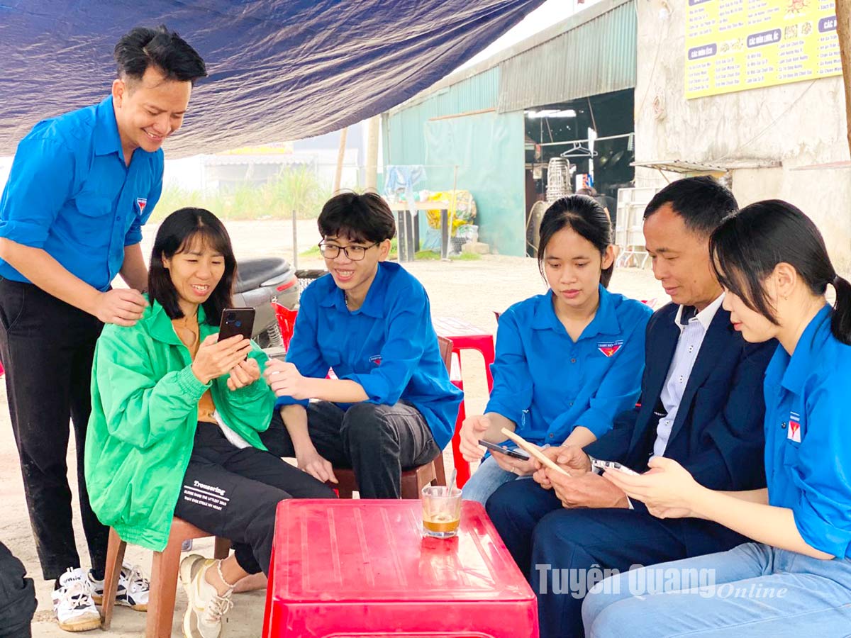 Các bạn trẻ thị trấn Sơn Dương tuyên truyền cách sử dụng mạng xã hội đúng cách.