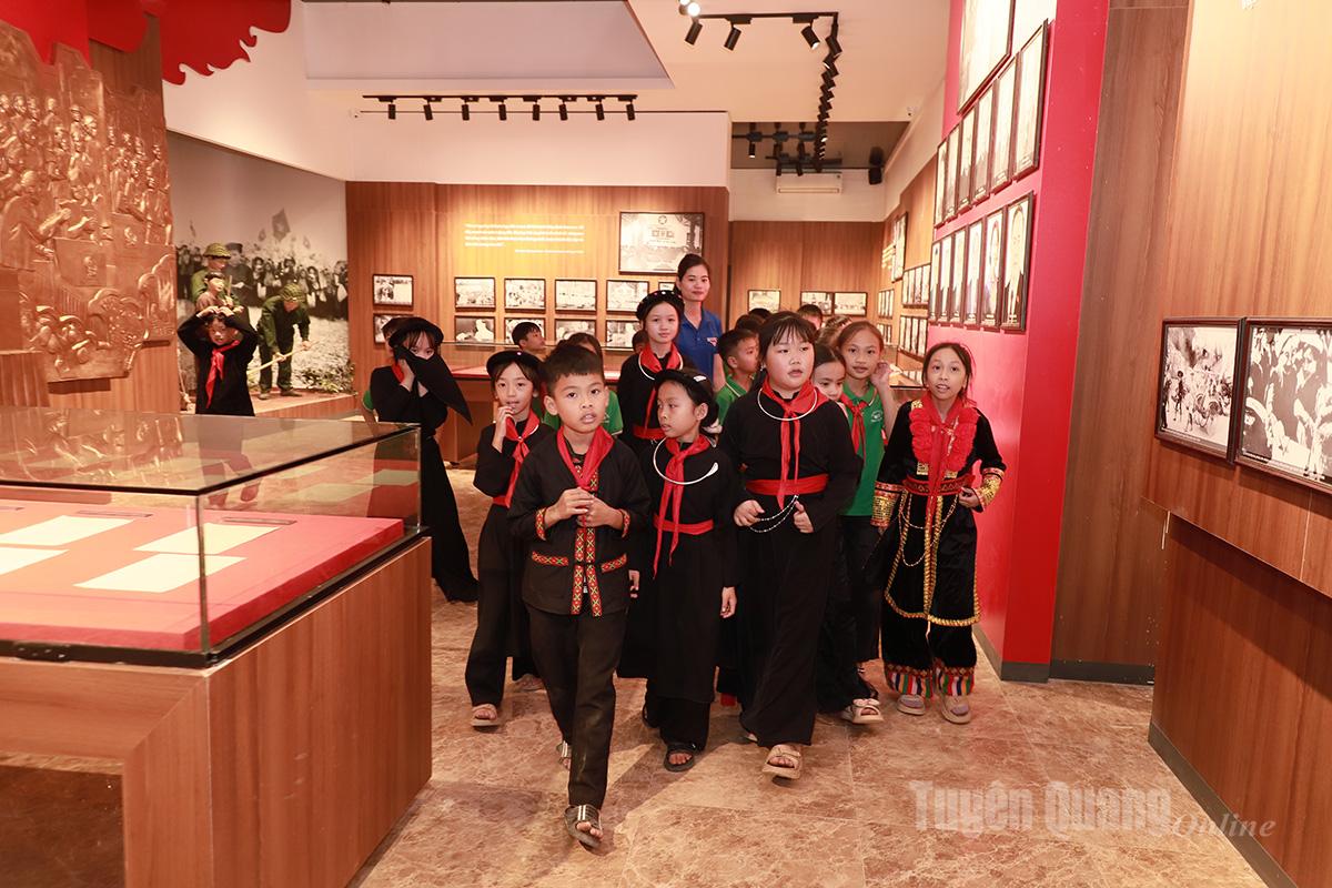 | Học sinh Trường Tiểu học Tôn Đức Thắng (xã Tân Trào) sinh hoạt ngoại khóa tại Khu Di tích Ban Thường trực Quốc hội. |