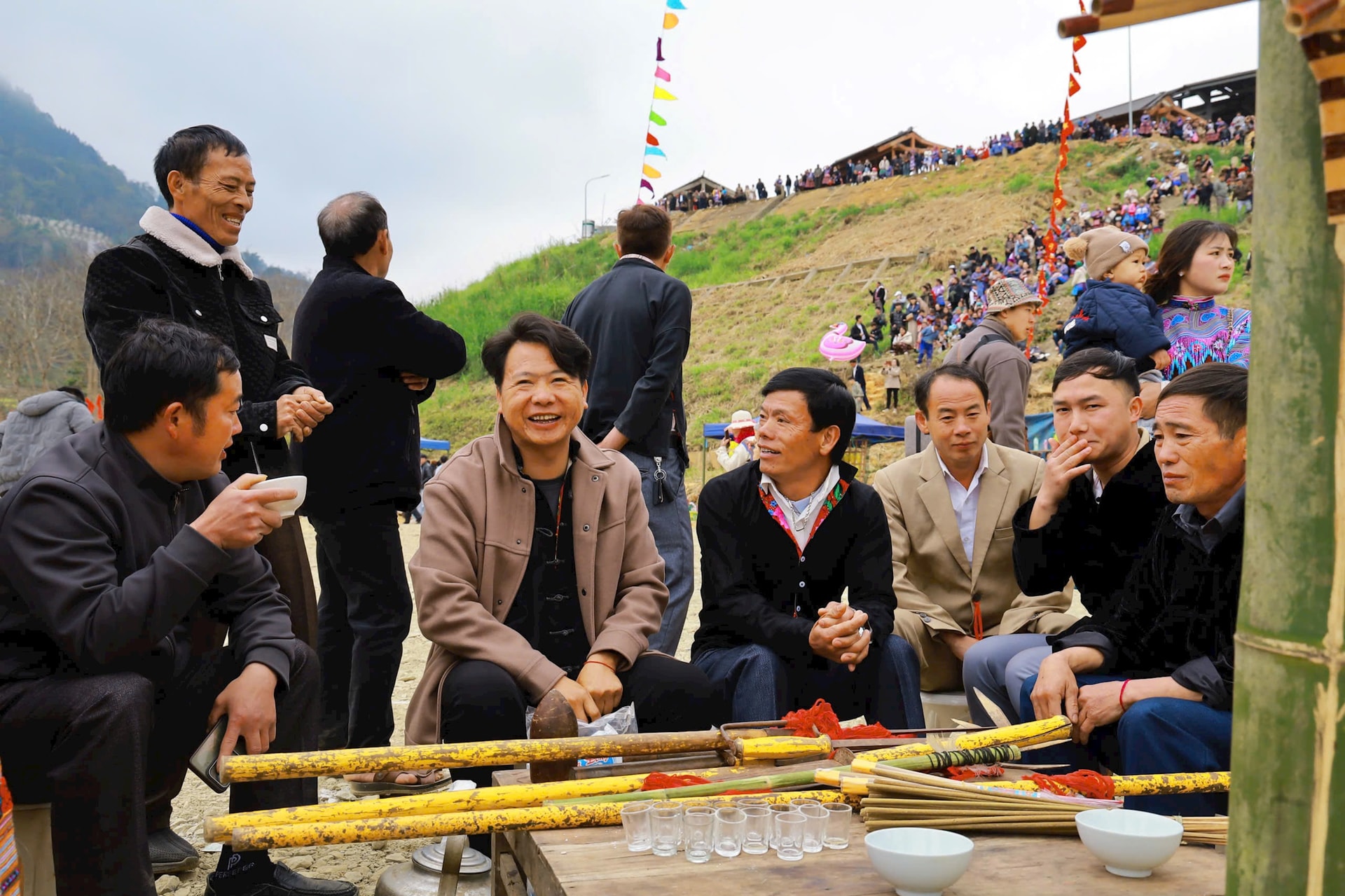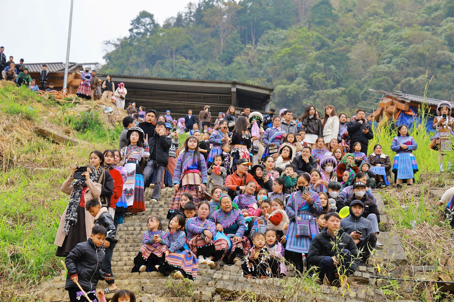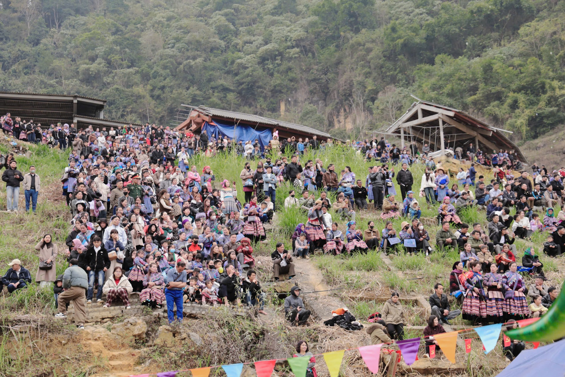 | Người dân tộc Mông dõi theo các hoạt động được tổ chức trong chương trình lễ hội. |