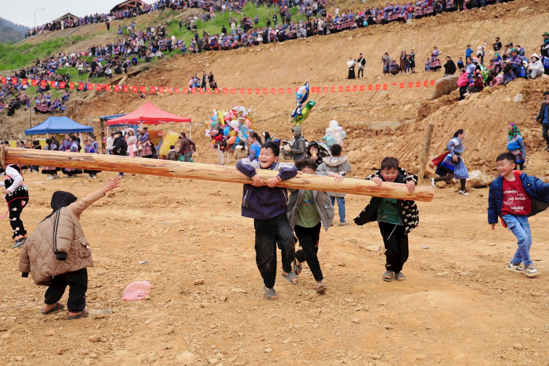 | Rất nhiều trò chơi dân gian trong lễ hội Gàu Tào thu hút người dân, đặc biệt là trẻ em tham gia. |