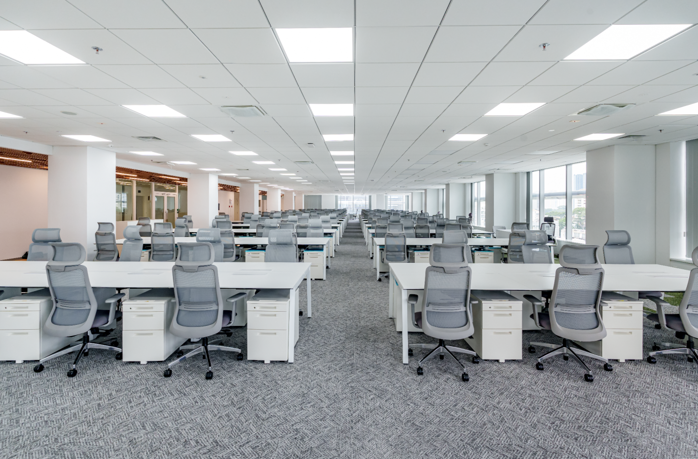 | Không gian văn phòng làm việc được trang bị toàn bộ ghế công thái học. |