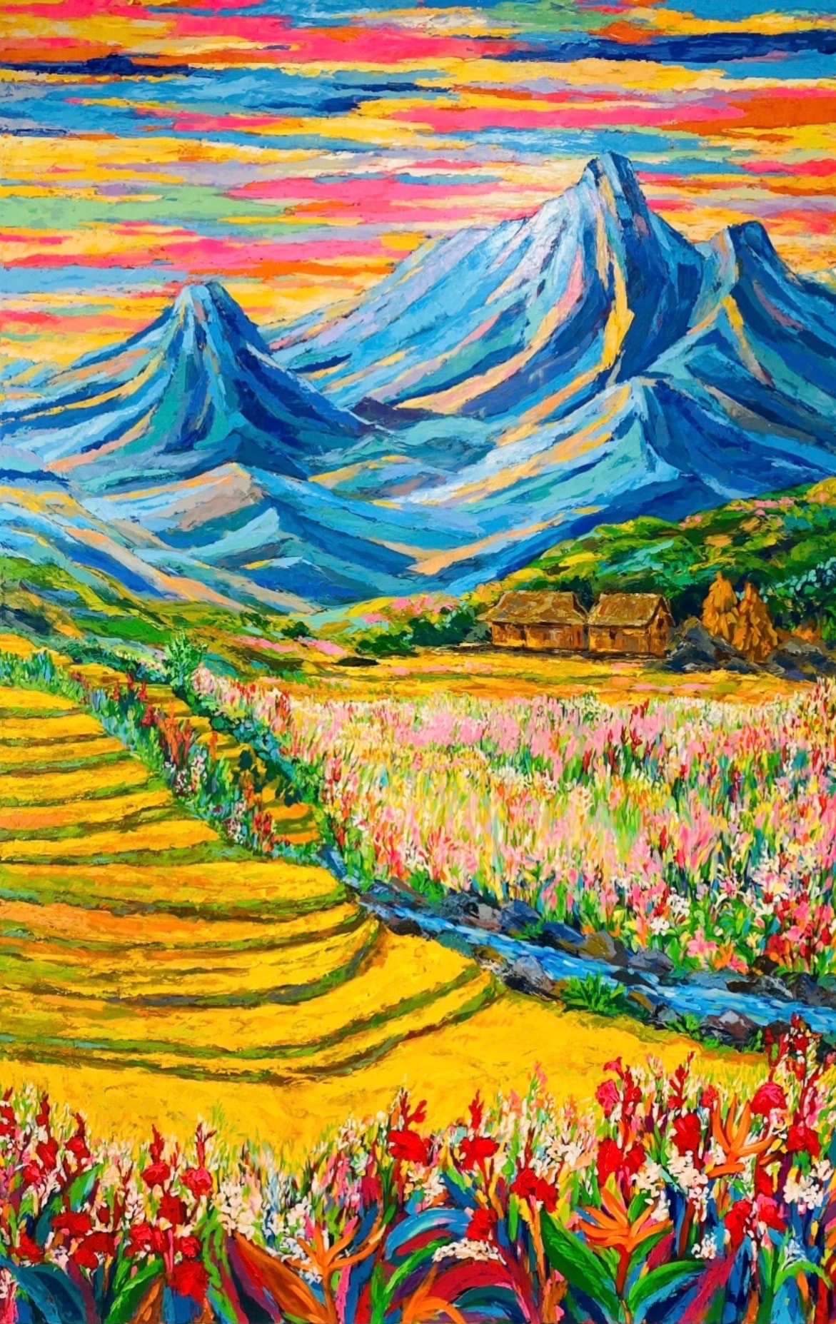 Bên cạnh đó là một số tác phẩm phong cảnh miền núi, phản ánh những vùng đất anh từng đi qua. Với anh, hội họa là hành trình sống chậm, giúp con người đối thoại với chính mình và tìm lại sự cân bằng.
