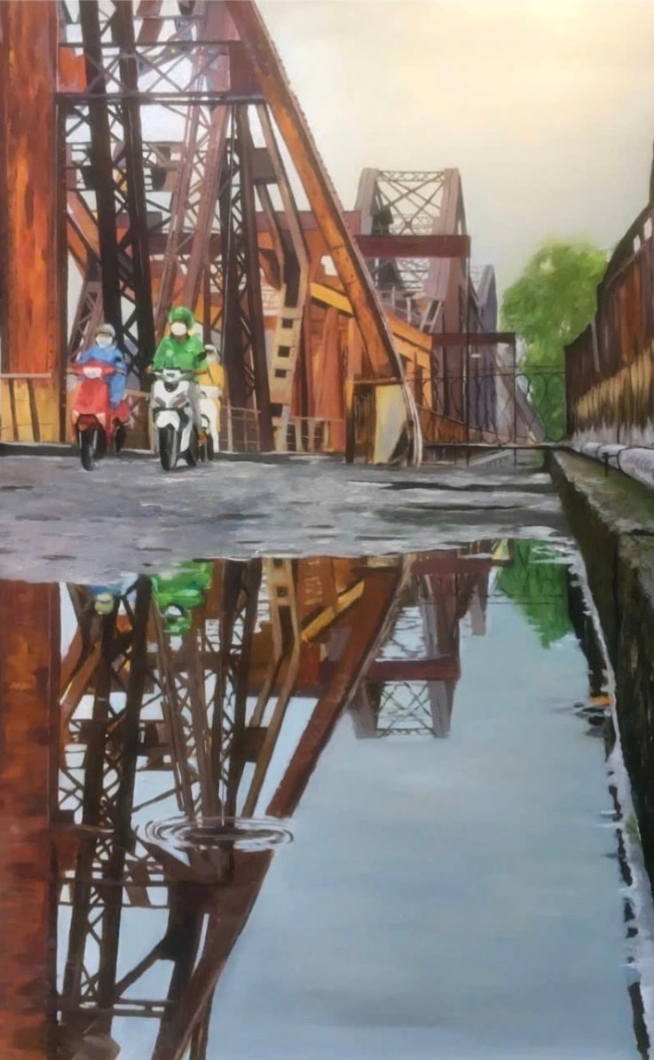 Là tác giả lớn tuổi nhất trong nhóm, họa sĩ Nguyễn Ngọc Bình mang đến triển lãm những tác phẩm sơn dầu trên vải với phong cách hiện thực giàu cảm xúc. Sinh năm 1947 tại Hà Nội, từng học tập, nghiên cứu và công tác nhiều năm trong lĩnh vực kiến trúc – quy hoạch, ông đến với hội họa như một hành trình trở về sự lắng đọng. Tranh của ông tập trung ca ngợi vẻ đẹp thiên nhiên, hoa lá và con người bình dị trên khắp các vùng miền. Bố cục giản dị, đường nét mềm mại, màu sắc hài hòa cùng cách xử lý ánh sáng tinh tế tạo nên chiều sâu không gian, đem lại cảm giác thanh thản cho người xem. Với ông, mỗi bức tranh là một “bài thơ ca ngợi vẻ đẹp”, đủ nhẹ nhàng để xoa dịu những lo toan đời sống.