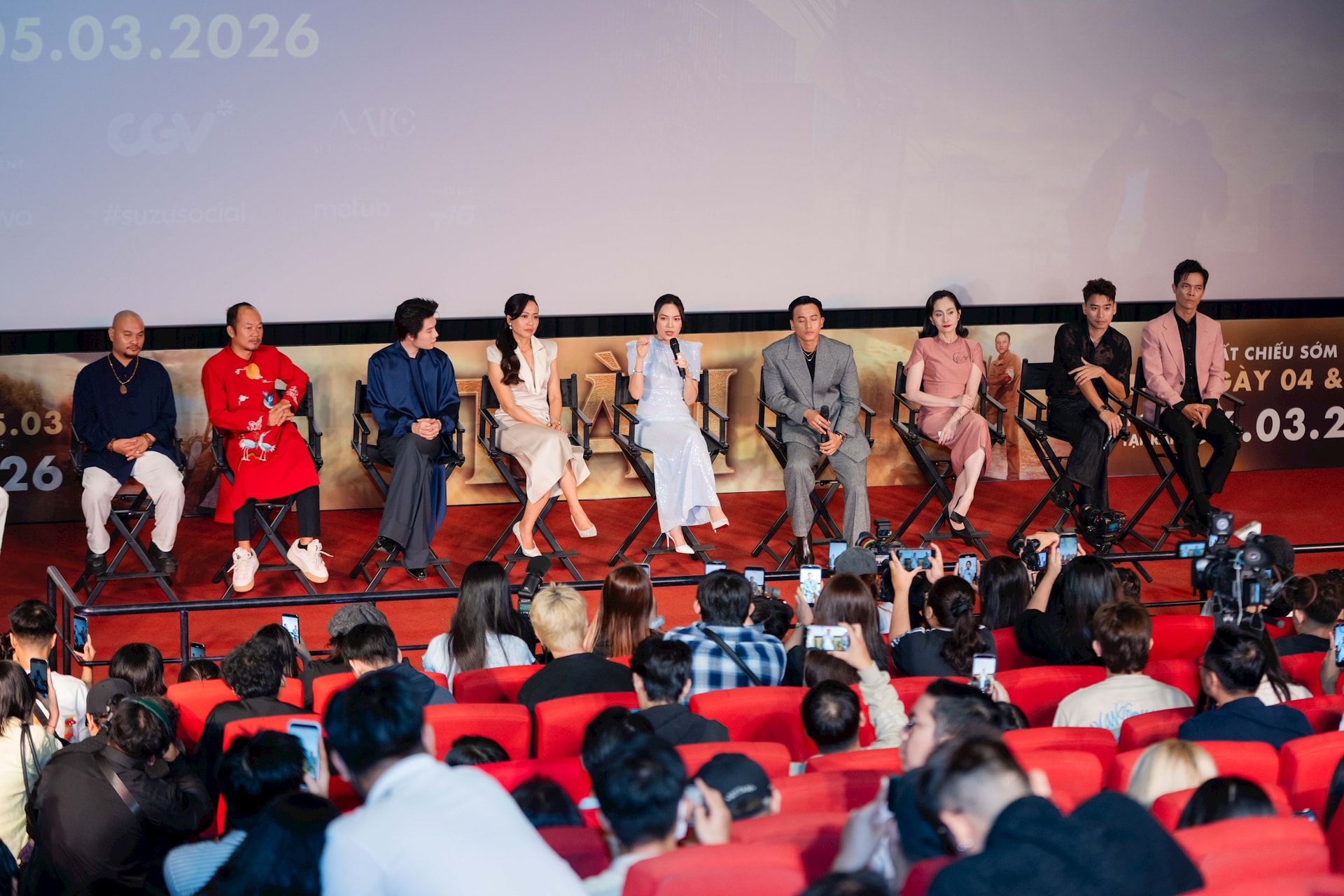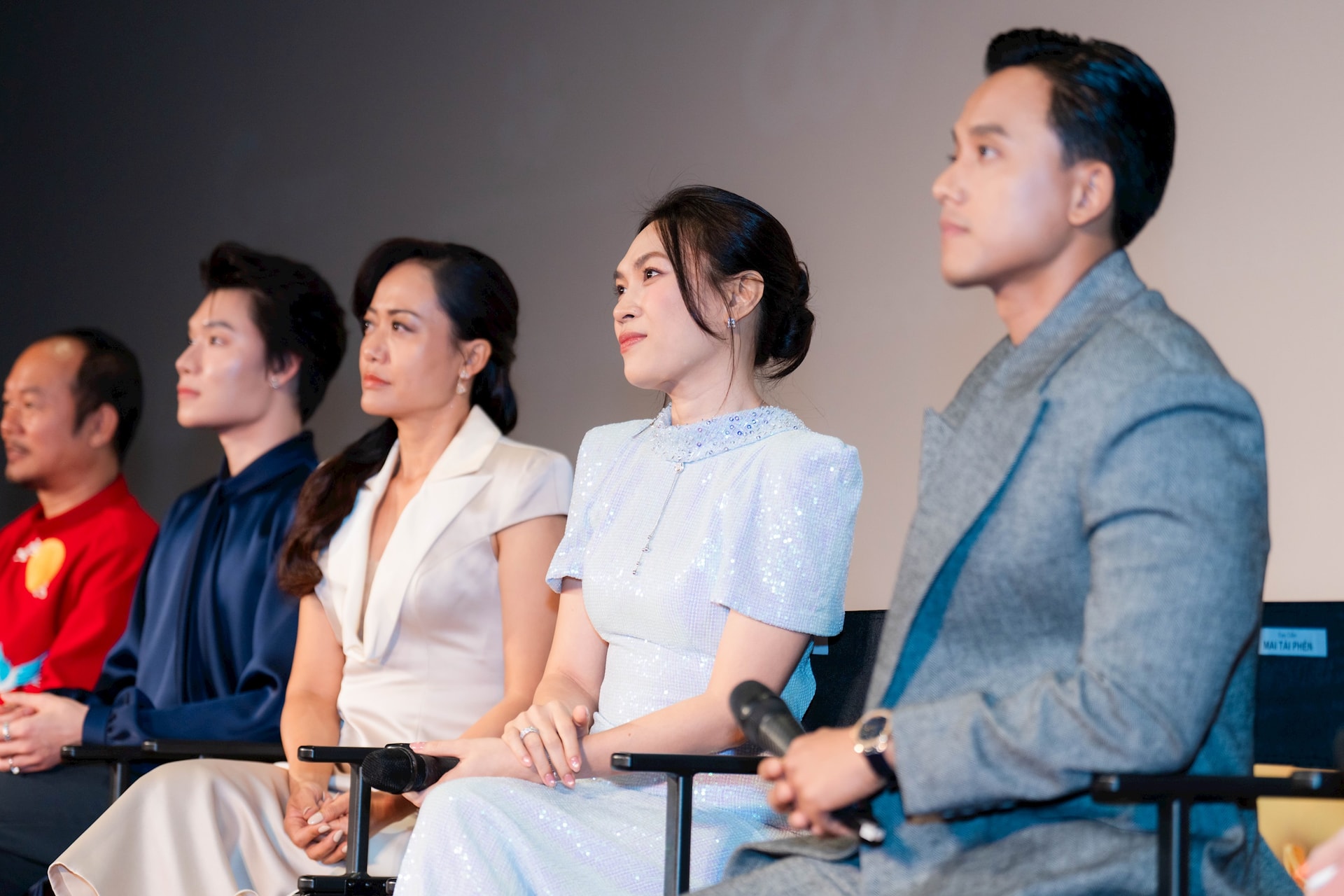 | Đoàn phim lắng nghe chia sẻ của những khán giả đầu tiên. Ảnh: Maywa |