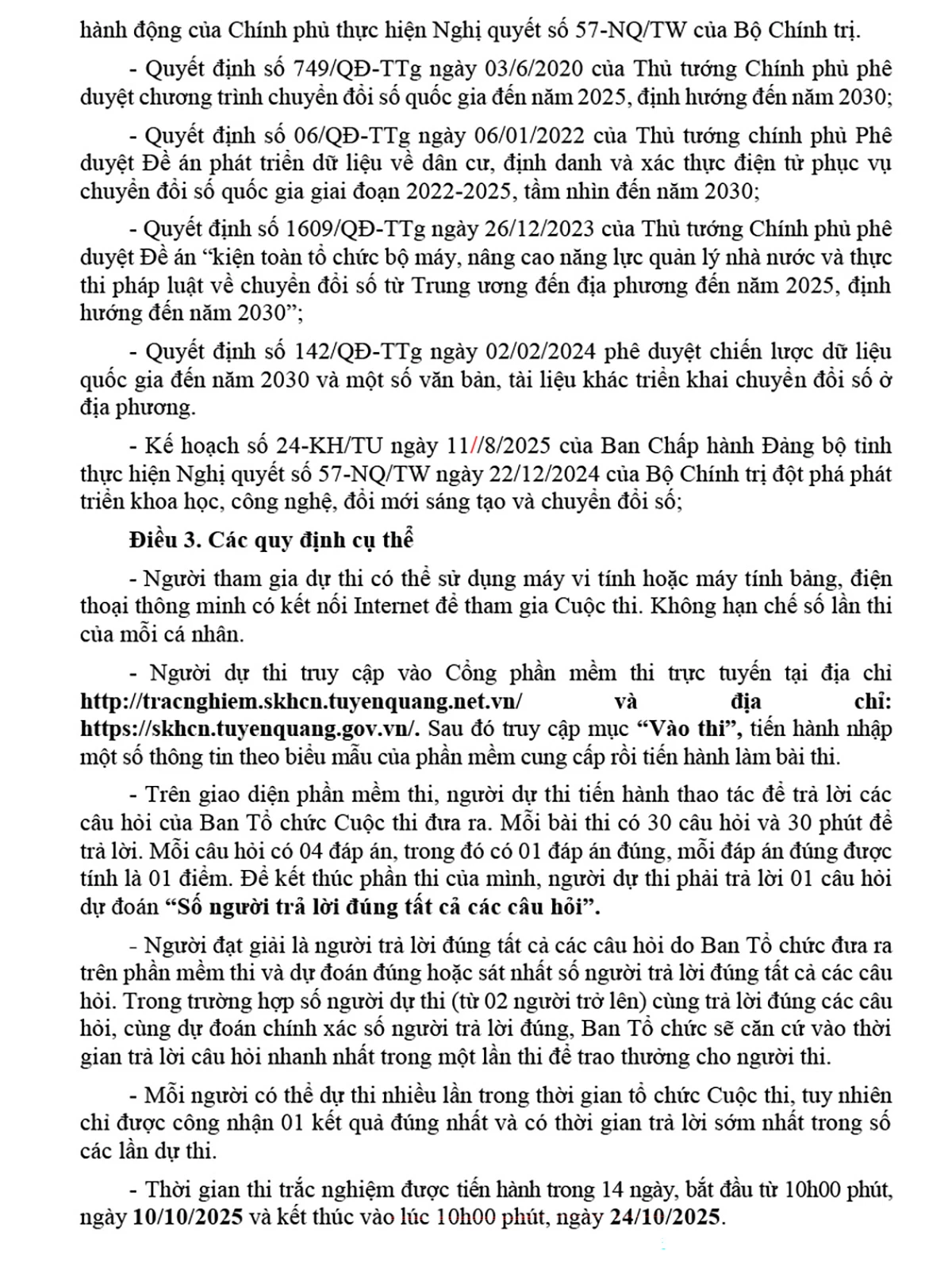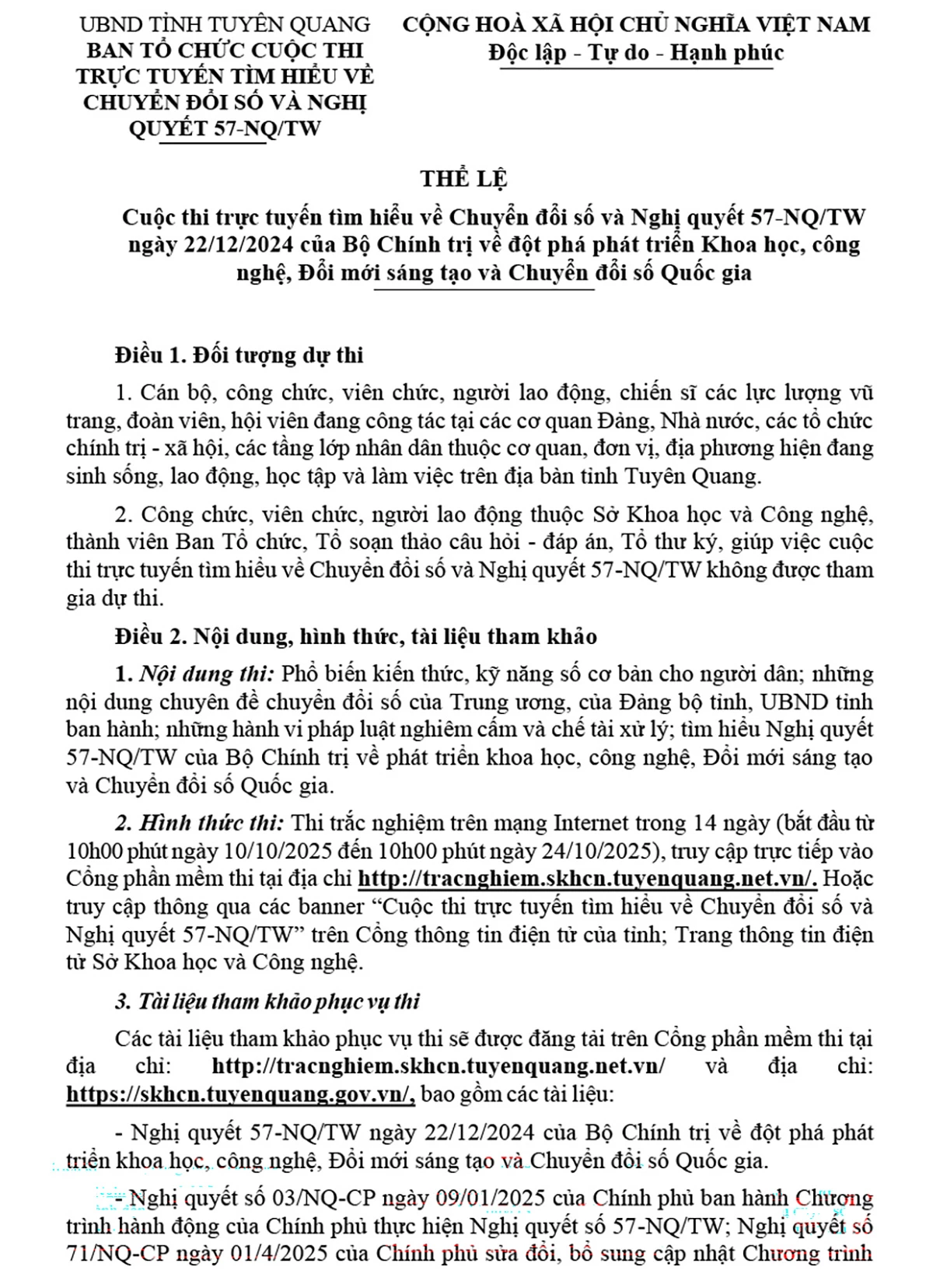 Thể lệ Cuộc thi trực tuyến tìm hiểu về Chuyển đổi số và Nghị quyết số 57-NQ/TW ngày 22/12/2024 của Bộ Chính trị