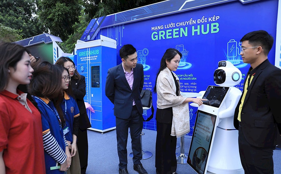 | Người dân Thủ đô tham quan các sản phẩm công nghệ tại triển lãm Mạng lưới đổi mới sáng tạo Hà Nội. Ảnh: Viết Thành |