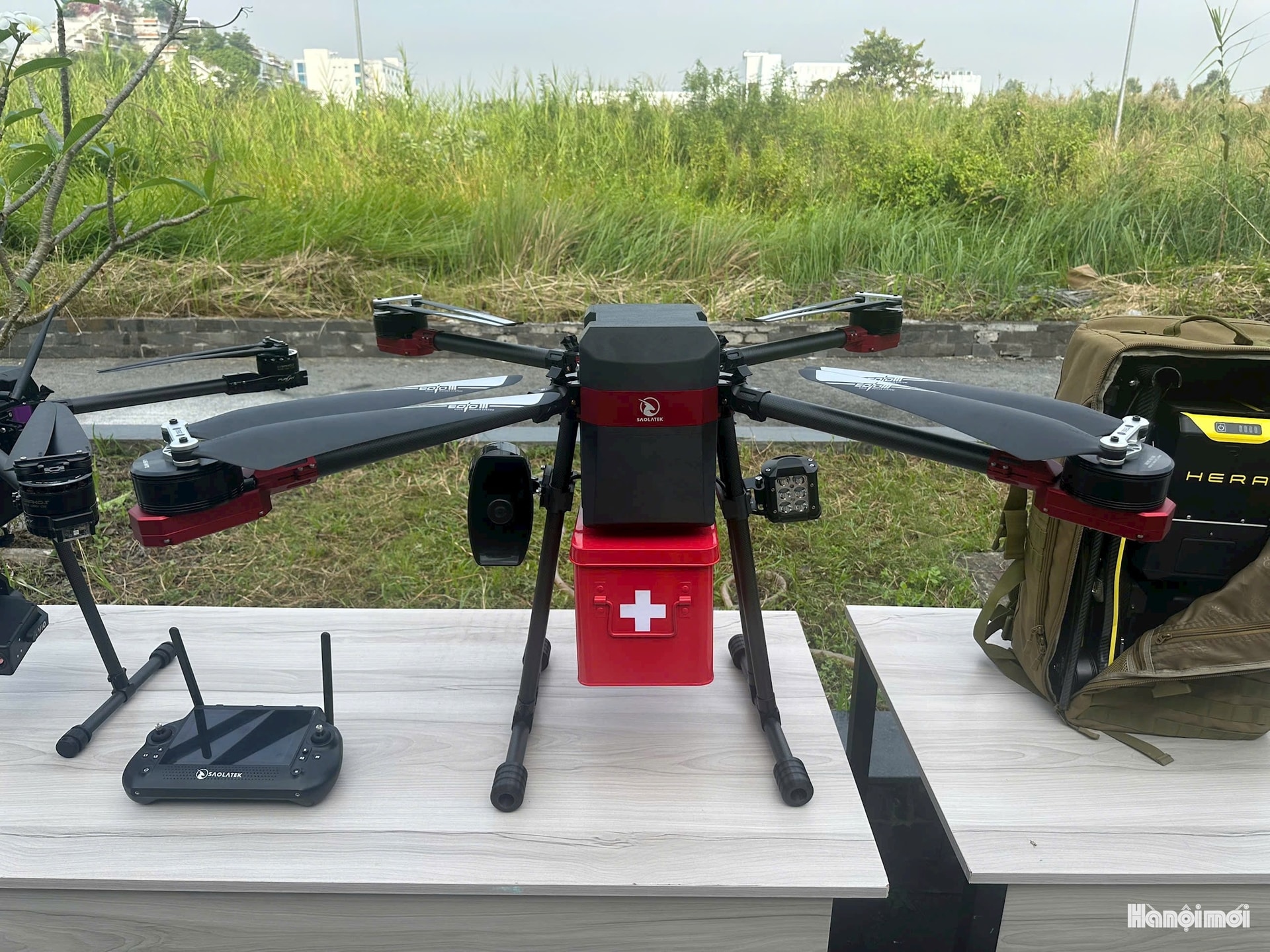 | Cận cảnh thiết bị bay UAV y tế. Ảnh: M.Tuấn |