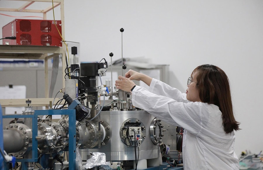 | Sinh viên ngành Công nghệ kỹ thuật hạt nhân, Trường Đại học Khoa học tự nhiên (Đại học Quốc gia Hà Nội) thực hành tại phòng máy gia tốc Pelletron. |