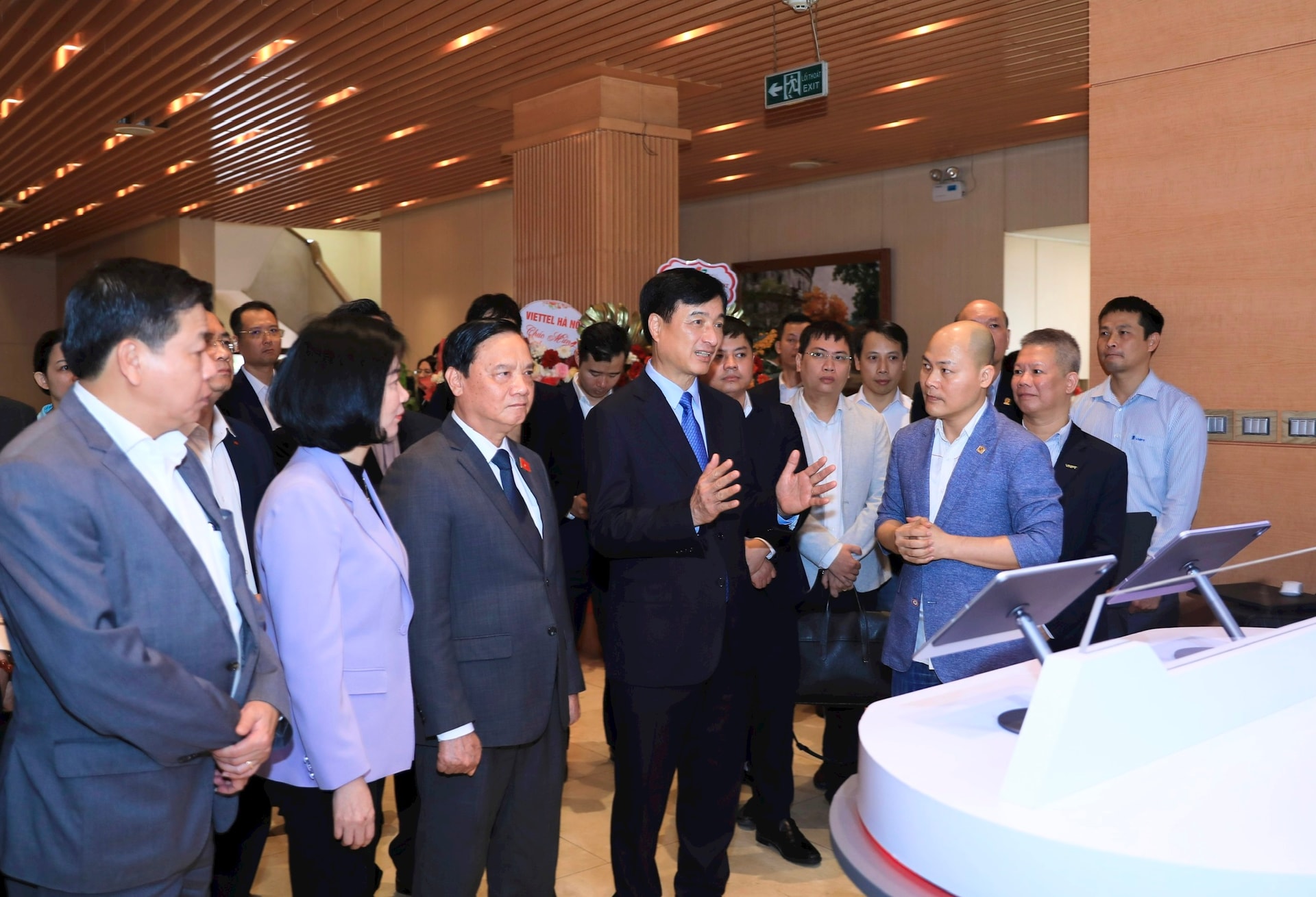 | Bí thư Thành ủy Hà Nội Nguyễn Duy Ngọc, Phó Chủ tịch Quốc hội Nguyễn Khắc Định cùng các đại biểu Trung ương, thành phố Hà Nội tham quan không gian chuyển đổi số của HĐND thành phố Hà Nội. Ảnh: Quang Thái |