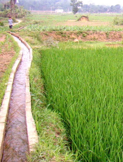 | Vụ sản xuất Đông - xuân 2010 - 2011, công trình kênh mương nội đồng tại xã Quang Minh (Bắc Quang) phát huy hiệu quả tưới tiêu. |