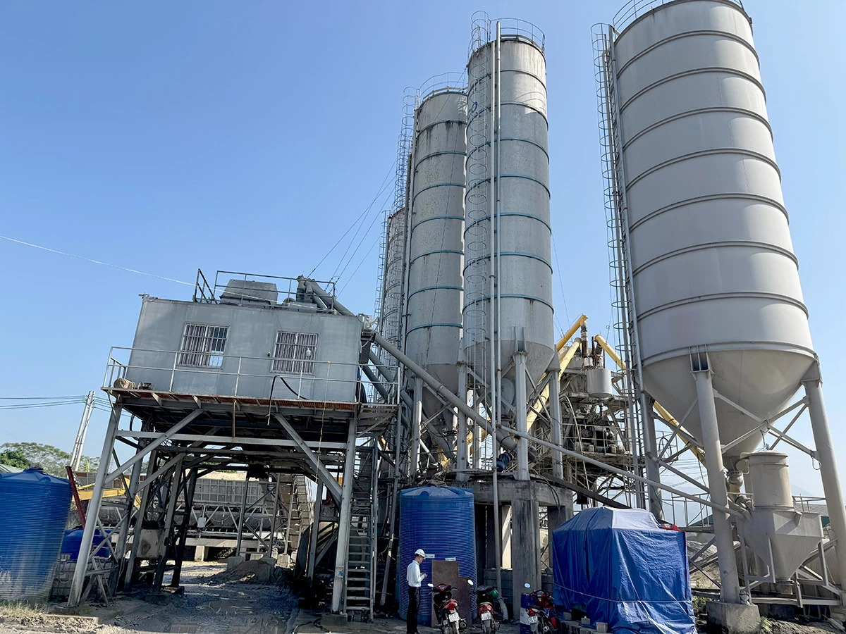 | Dây chuyền sản xuất bê tông thương phẩm của Công ty Cổ phần Công nghiệp Tân Hà đang phải tạm nghỉ do thiếu vật liệu. |