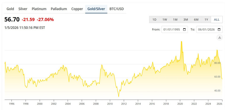 | Biểu đồ tỷ lệ vàng/bạc. (Nguồn: JM Bullion) |