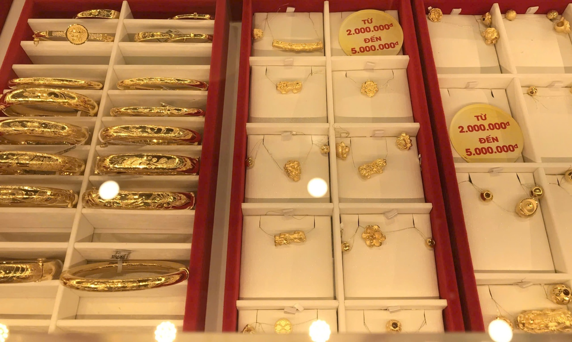 Sáng nay 2-1, giá vàng trong nước có nơi giữ nguyên, có nơi tăng 500.000 đồng/lượng, cao hơn giá quốc tế khoảng 14,5 triệu đồng/lượng.