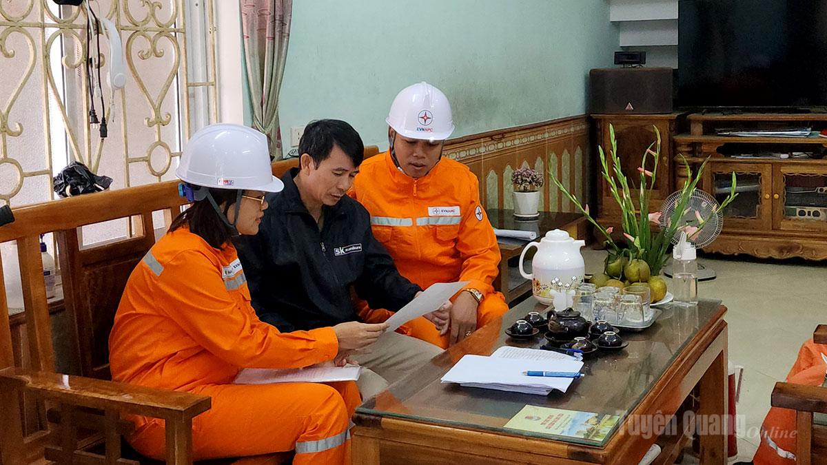 | Cán bộ Công ty Điện lực Tuyên Quang tuyên truyền cho người dân sử dụng điện an toàn, tiết kiệm. |