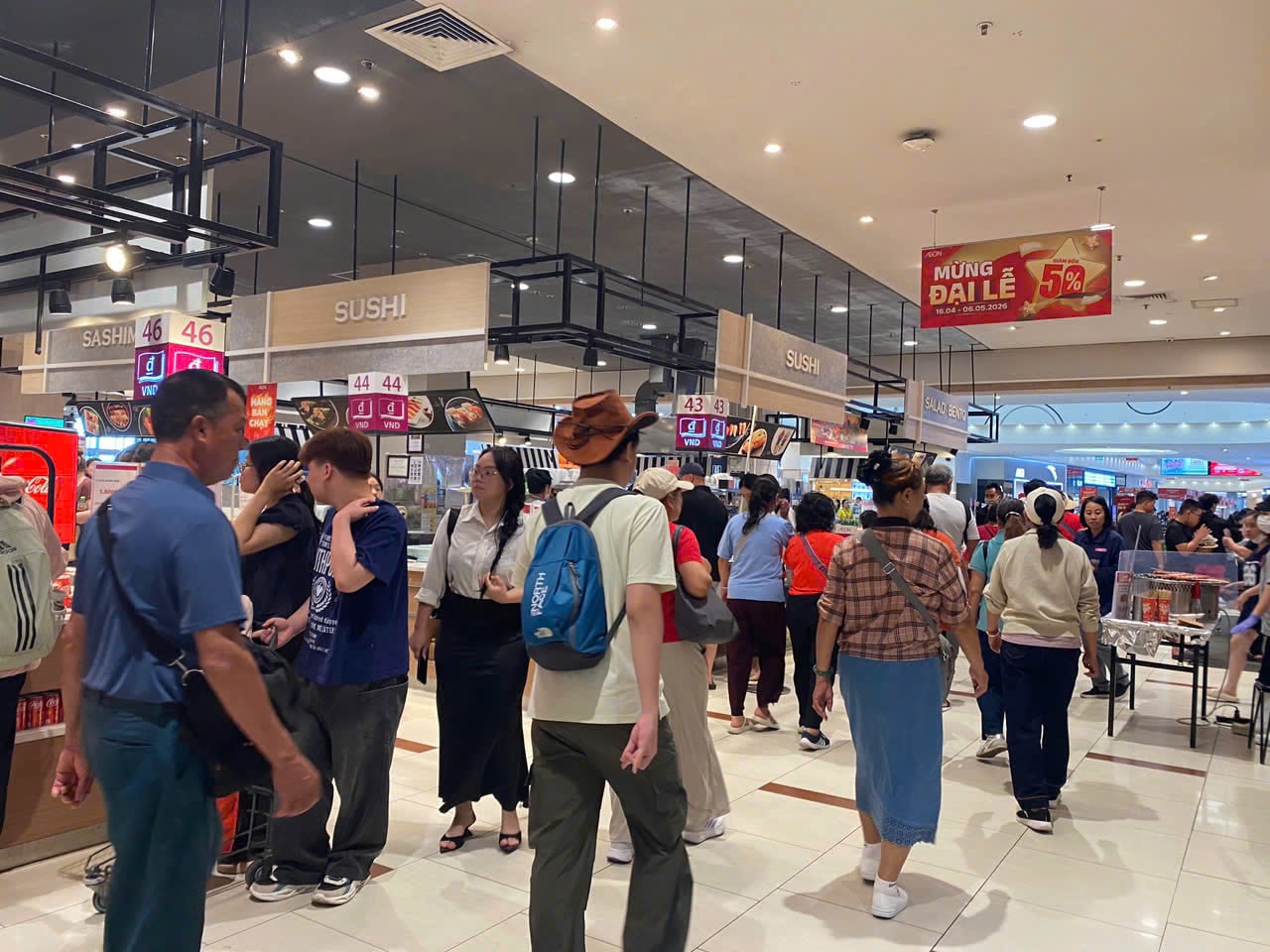 Để phục vụ nhu cầu mua sắm và vui chơi tăng cao, từ ngày 25-4, hầu hết các trung tâm thương mại, trung tâm bách hóa tổng hợp và siêu thị AEON sẽ kéo dài thời gian hoạt động, đóng cửa muộn hơn so với ngày thường.
