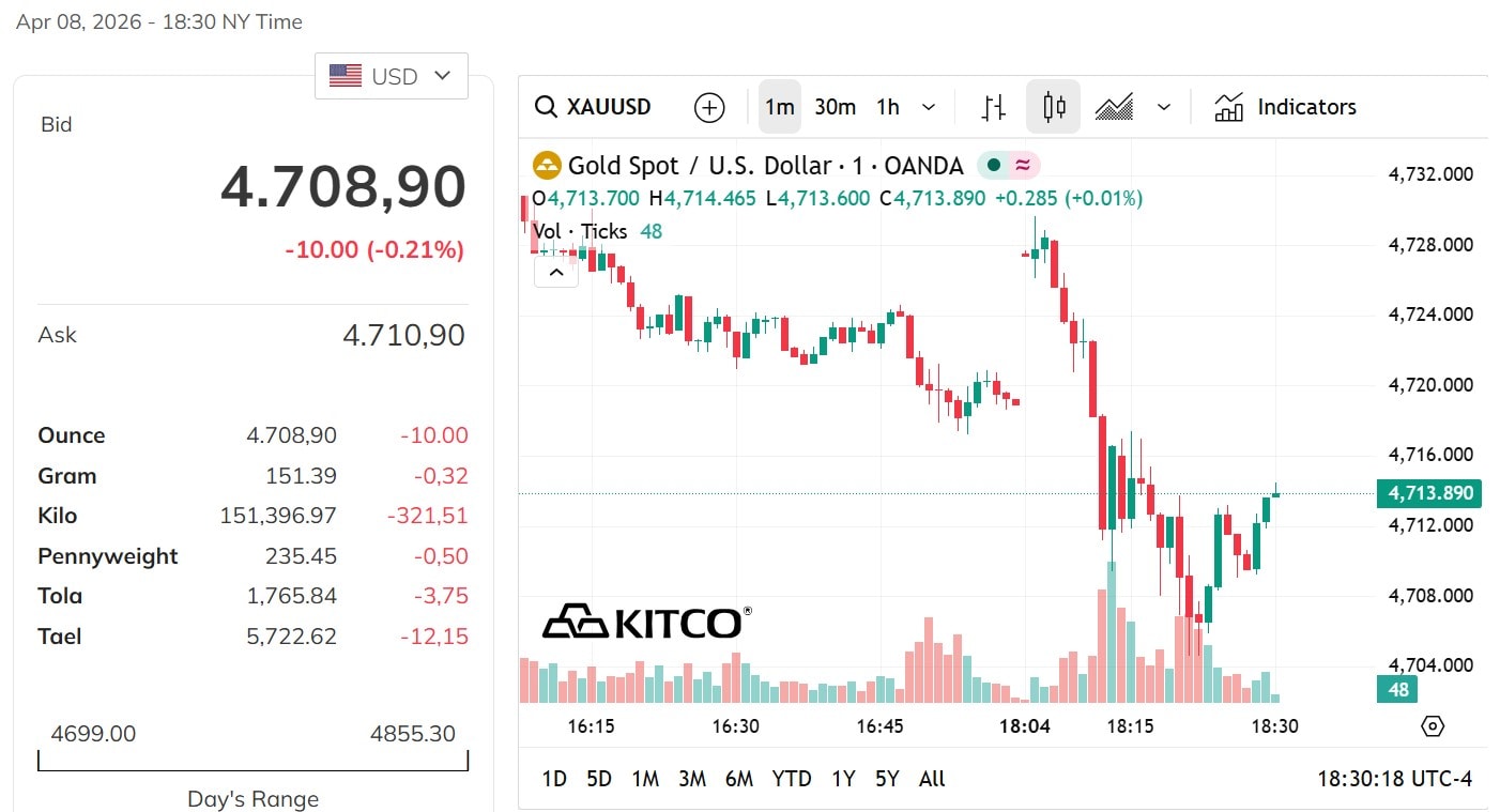 Giá vàng thế giới hiện đang được hỗ trợ bởi thông tin Mỹ và Iran đạt thỏa thuận ngừng bắn kéo dài hai tuần, giúp kỳ vọng căng thẳng Trung Đông hạ nhiệt và thúc đẩy nhu cầu trú ẩn.