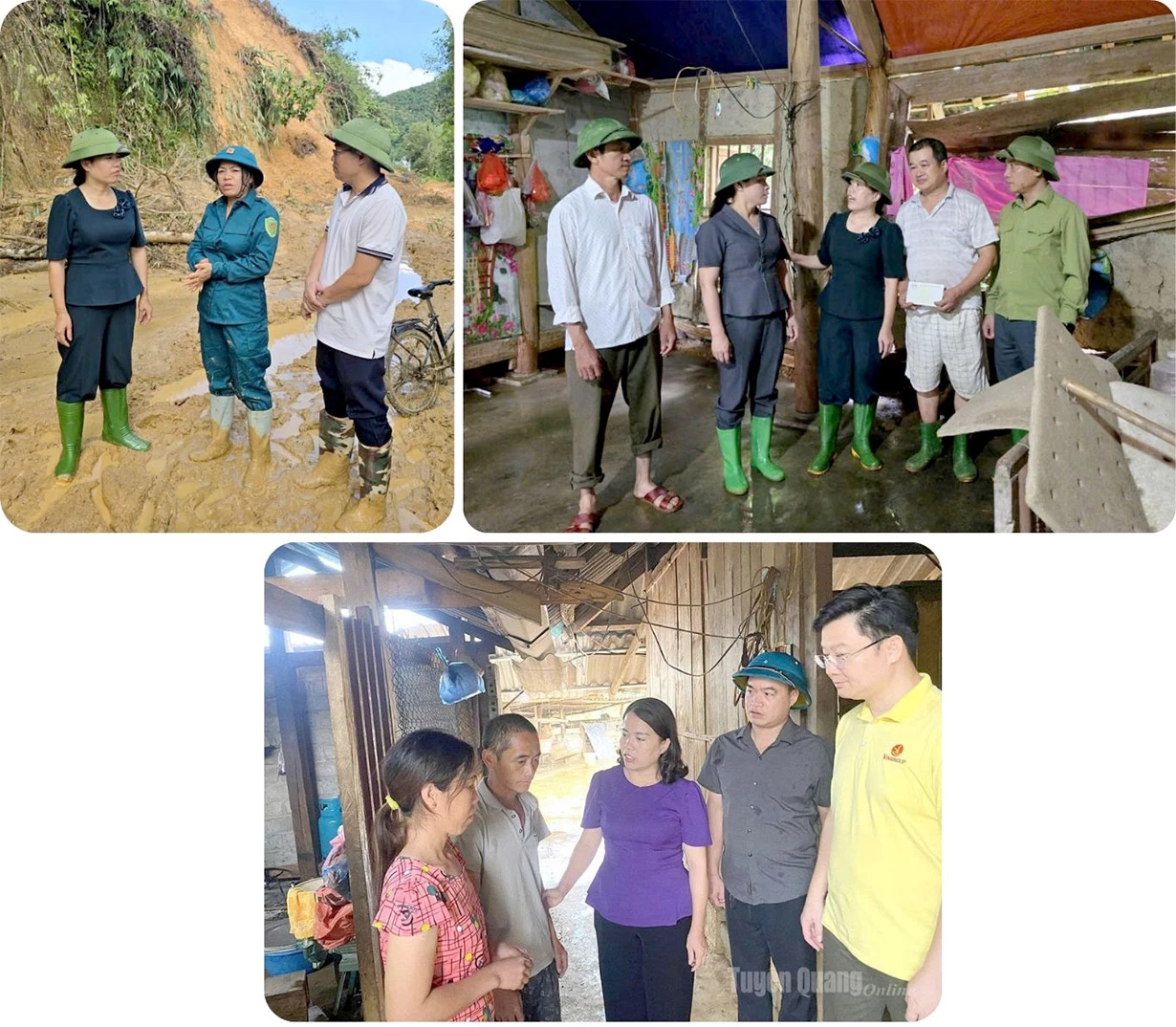 | Đồng chí Lý Thị Lan, Trưởng Đoàn chuyên trách Đoàn ĐBQH tỉnh Tuyên Quang thăm hỏi người dân bị thiệt hại sau lũ lụt. |
