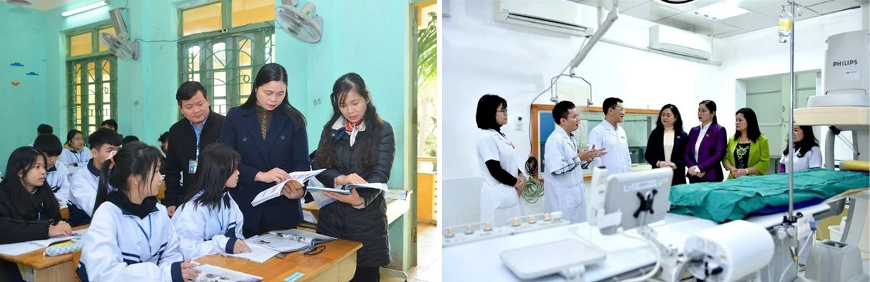 | Các đại biểu Quốc hội tỉnh giám sát chuyên đề về y tế - giáo dục. |