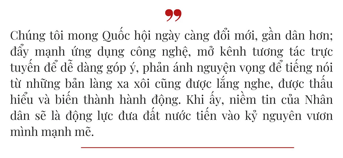 Phó Trưởng đoàn chuyên trách Đoàn ĐBQH tỉnh Tuyên Quang, đồng chí Ma Thị Thúy, đã khẳng định: Chúng tôi ý thức sâu sắc rằng, từng ý kiến cử tri là mệnh lệnh từ cuộc sống. Lời khẳng định này không chỉ phản ánh tinh thần trách nhiệm của các đại biểu Tuyên Quang, mà còn thể hiện xu hướng tất yếu: Quốc hội phải là Quốc hội hành động, gắn bó mật thiết với Nhân dân, không chỉ bằng lời nói mà bằng những quyết sách thiết thực.