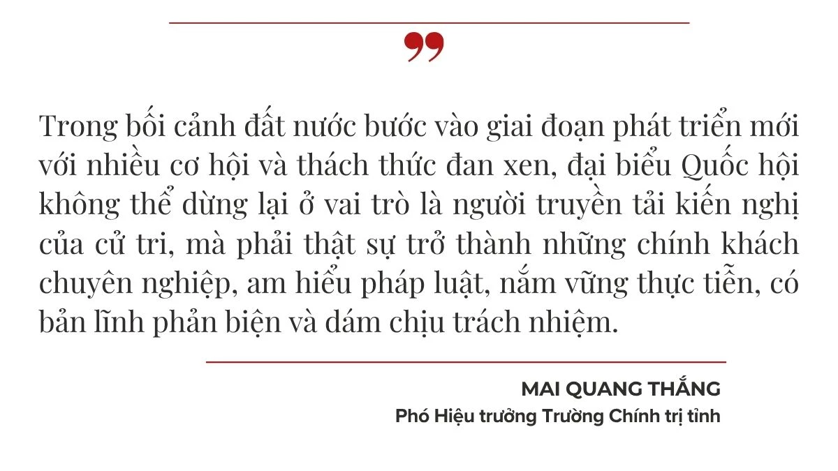 Điều này đòi hỏi mỗi đại biểu cần phải nâng cao bản lĩnh, đạo đức và năng lực đại biểu dân cử để họ thực sự là người đại diện xứng đáng cho ý chí và nguyện vọng của Nhân dân; khơi dậy và củng cố niềm tin của Nhân dân vào Đảng, vào Quốc hội, HĐND các cấp, nơi quyền lực phải luôn gắn liền với trách nhiệm, minh bạch và sự giám sát của chính những người trao quyền đó là Nhân dân.