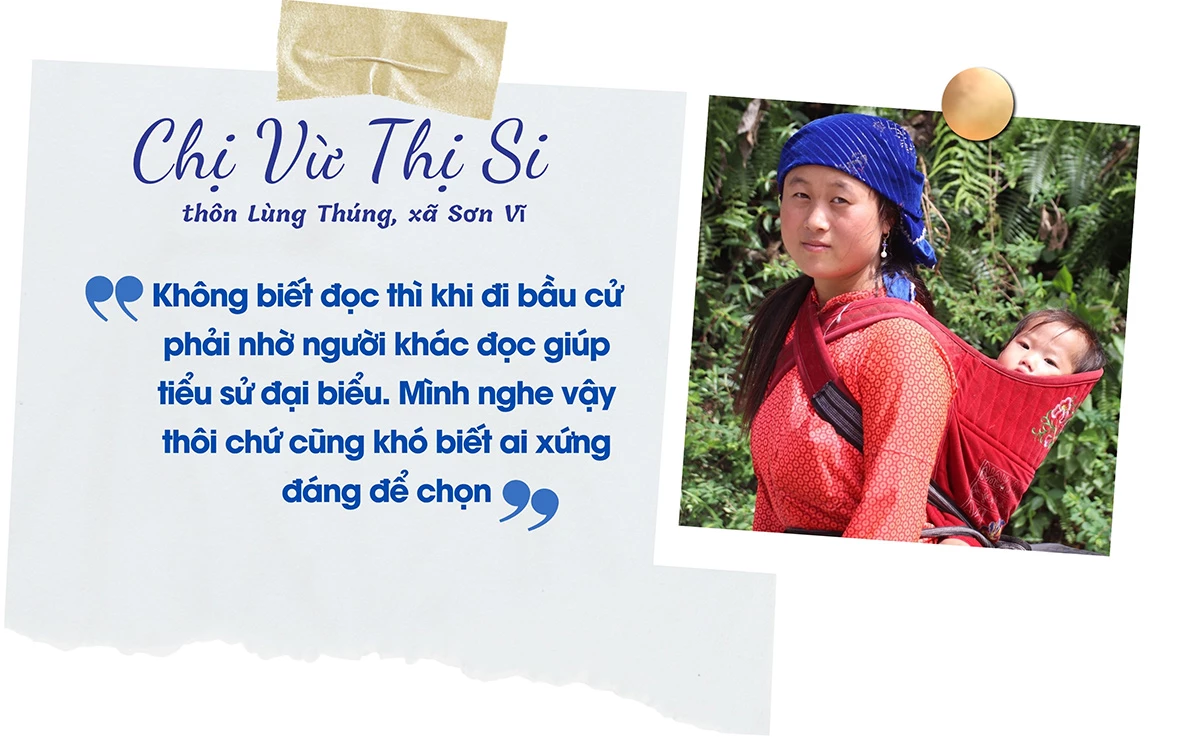 Câu chuyện của cụ Sài, chị Mỷ không phải ngoại lệ nơi biên viễn. Mỗi khi người đối diện dùng tiếng Việt để giao tiếp, câu trả lời thường trực của Vừ Thị Si, thôn Lùng Thúng, xã Sơn Vĩ là “chi pâu” – tiếng Mông cũng có nghĩa là “không biết”.