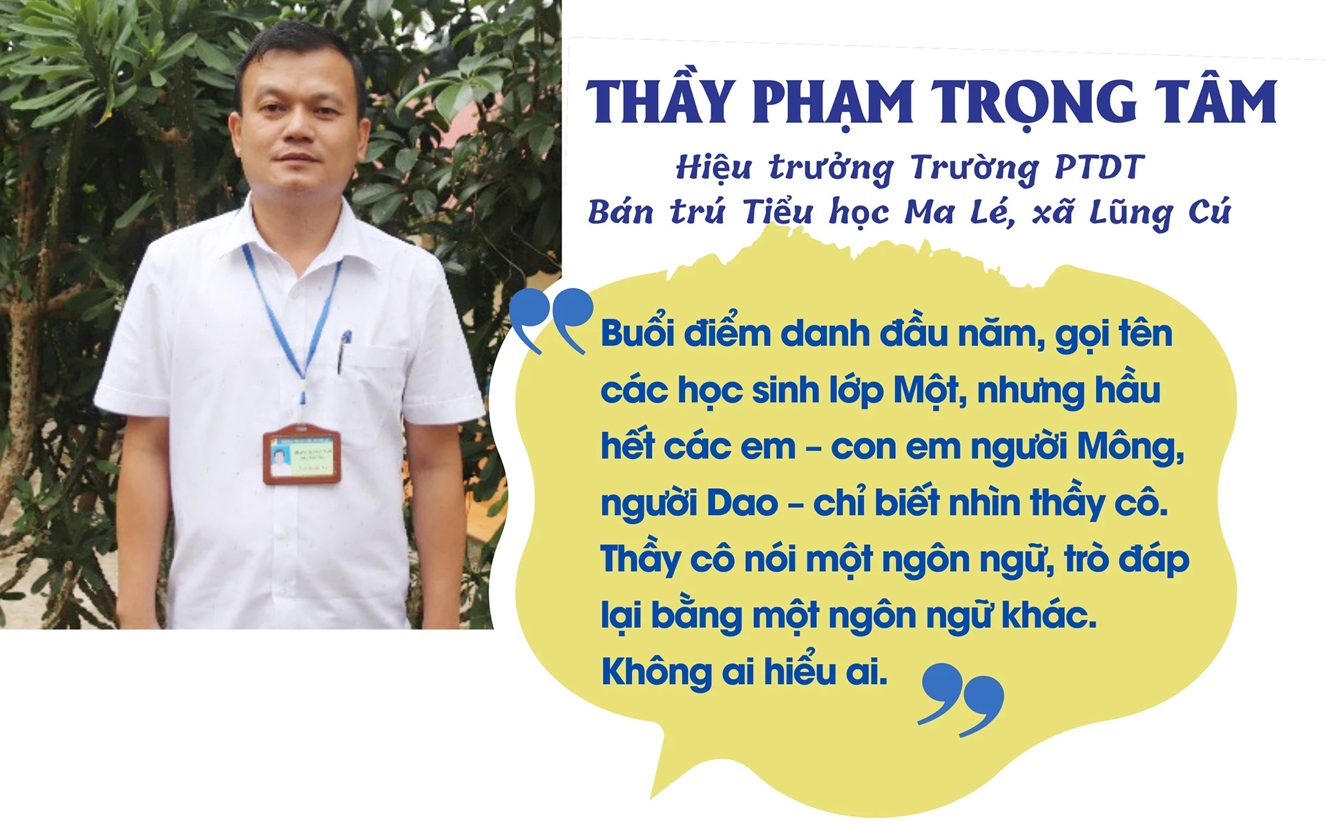 Tại Trường PTDT Bán trú Tiểu học Ma Lé, xã Lũng Cú, nhiều thầy cô giáo vi von vui "Tiếng Việt ở đây không phải là tiếng mẹ đẻ, nó là một môn ngoại ngữ đặc biệt". Sự đặc biệt ấy được minh chứng rõ nhất ngay trong buổi điểm danh đầu năm.