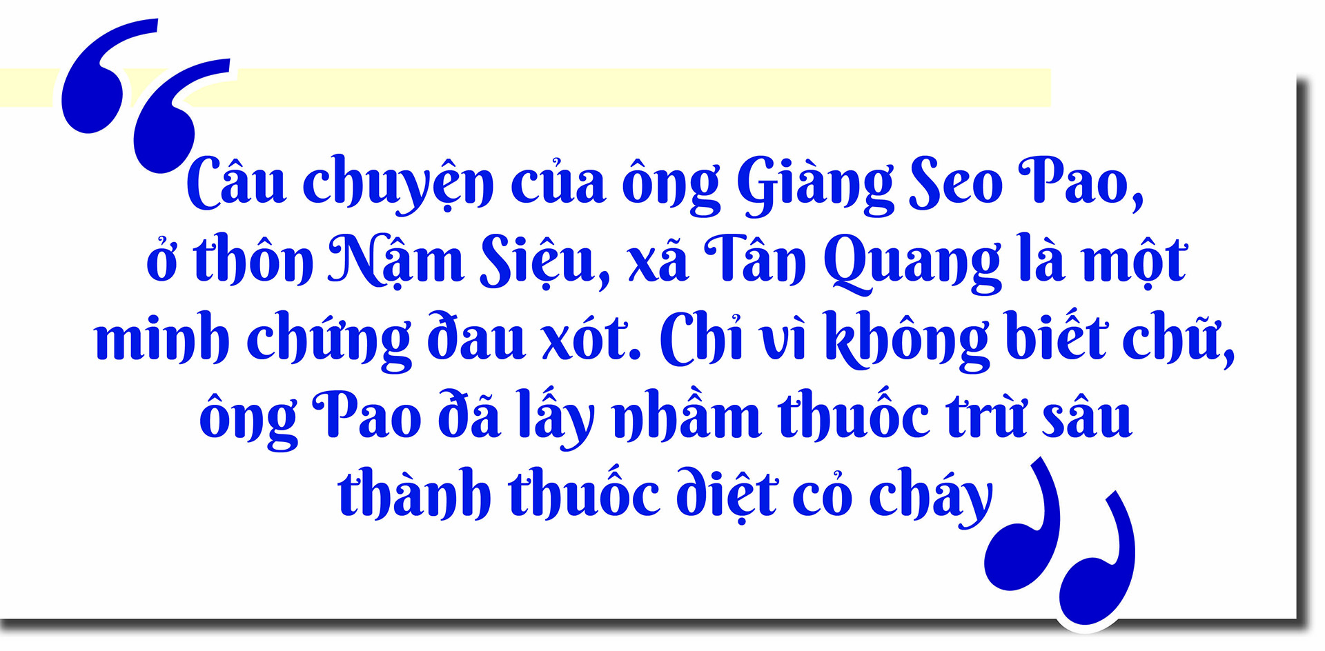 Thay vì cứu ruộng lúa khỏi sâu bệnh, ông lại tự tay “đầu độc” cả cánh đồng, để rồi chỉ sau một đêm, màu xanh sự sống hóa thành khoảng trống tang thương. Một nhầm lẫn tưởng nhỏ, nhưng đủ hóa thành thảm họa, đẩy cái nghèo cái khổ thêm phần dai dẳng. Nếu như ông Giàng Seo Pao mất trắng mùa màng vì nhầm thuốc thì câu chuyện của chị Lù Thị Ve, người dân tộc Nùng ở thôn Pù Ngọm, xã Bắc Quang lại gióng lên nỗi lo khác về sự an toàn sức khỏe của chính bản thân.