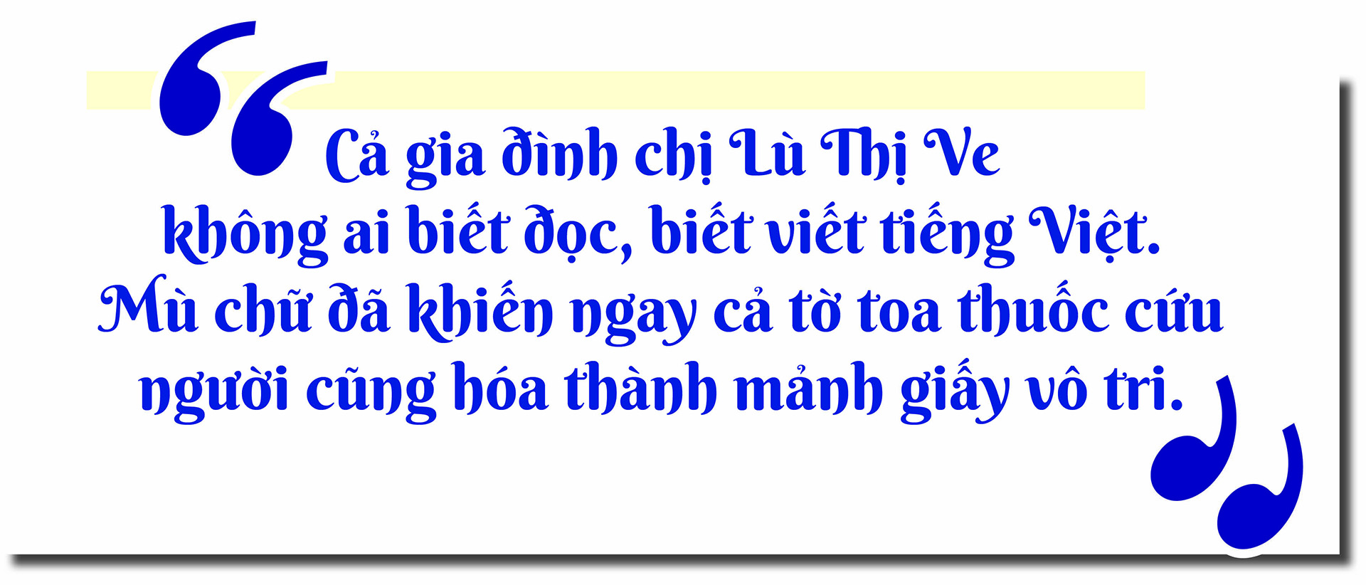 Câu chuyện của Lình không phải hiếm ở miền biên cương. Chị Vừ Thị Súa, 28 tuổi ở thôn Sủa Nhà Lử cũng chung số phận. Từng biết đôi nét chữ khi học hết lớp 5, nhưng bao năm lam lũ khiến tất cả trở thành xa lạ. Giờ đây, nặng gánh mưu sinh với 5 đứa con thơ cần chăm sóc, Súa gần như không có thời gian để học lại tiếng Việt. Và rồi, không ít lần làm giấy tờ, thủ tục hành chính, chị lại lắc đầu nói “chi pâu” như chính lời cảnh tỉnh về nỗi thiếu thốn chữ nghĩa trong đời sống thường nhật.