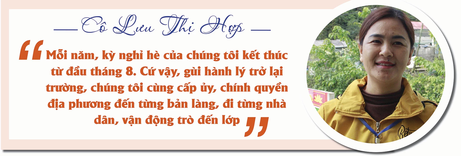 Cũng ở mảnh đất Sơn Vĩ này, cô Lưu Thị Hợp, quê xã Kim Bình, đã gắn bó với Trường PTDT Bán trú THCS hơn 16 năm. Ban đầu, cô nghĩ chỉ vài năm cống hiến rồi sẽ xin chuyển về quê. Thế nhưng tình yêu với học trò nghèo đã níu chân người giáo viên tâm huyết. Con trai cô Hợp khi mới 6 tháng tuổi phải theo mẹ lên trường, nhưng vì mùa đông khắc nghiệt, con ốm đau triền miên, cuối cùng phải gửi về quê nhờ ông bà chăm sóc.