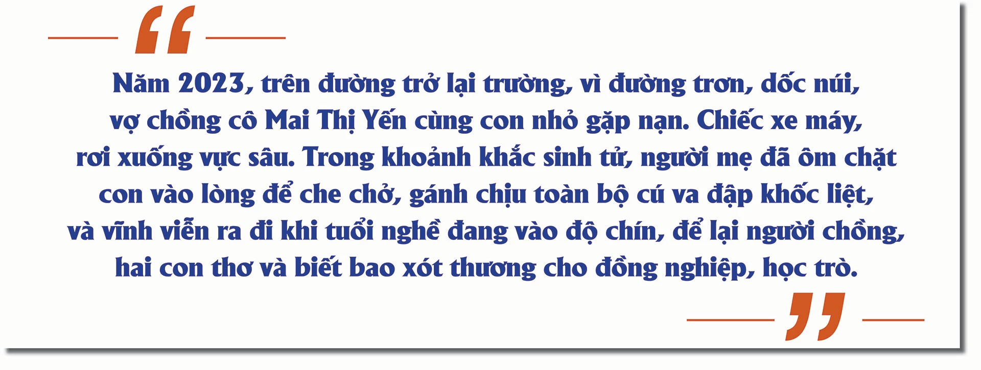 Ở vùng cao nguyên đá, những con đường đến trường còn vô cùng nguy hiểm. Ở xã Đường Thượng, đã 2 năm trôi qua nhưng đồng nghiệp, học trò và phụ huynh vẫn luôn nhớ về vợ chồng cô giáo Mai Thị Yến. Cô Yến công tác tại trường mầm non, còn chồng giảng dạy ở trường tiểu học. Suốt 13 năm bám bản, gieo chữ giữa đại ngàn, cô để lại cho các thế hệ học trò tình yêu thương tha thiết. Cũng giống như nhiều hoàn cảnh giáo viên vùng cao, vì điều kiện khó khăn, xa gia đình, con cái phải gửi về quê nhờ ông bà chăm sóc. Vợ chồng cô Yến có 2 người con, trong đó người con lớn được gửi về quê.