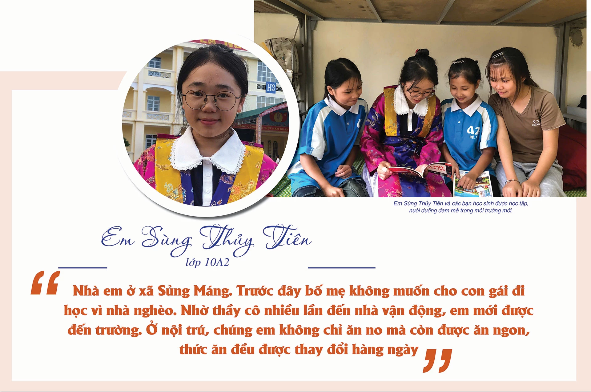 Thầy Nguyễn Trường Lâm, Hiệu trưởng Trường Nội trú THCS&THPT Mèo Vạc chia sẻ: Toàn bộ thực phẩm phục vụ bếp ăn tập thể của học sinh đều có nguồn gốc, thực đơn thay đổi theo ngày, đảm bảo chất lượng, dinh dưỡng. Bữa cơm chung mỗi ngày không chỉ nuôi dưỡng thể chất mà còn giữ các em ở lại trường. Nhiều học sinh ở xa, điều kiện khó khăn, nếu không có nội trú, bán trú, dễ dẫn đến nguy cơ bỏ học giữa chừng. Ở đây, phương châm của nhà trường là Rèn luyện thể chất - Trải nghiệm học tập thú vị - Nuôi dưỡng đam mê học hỏi - Tự chủ cuộc sống - Giữ gìn và phát huy bản sắc văn hóa dân tộc".