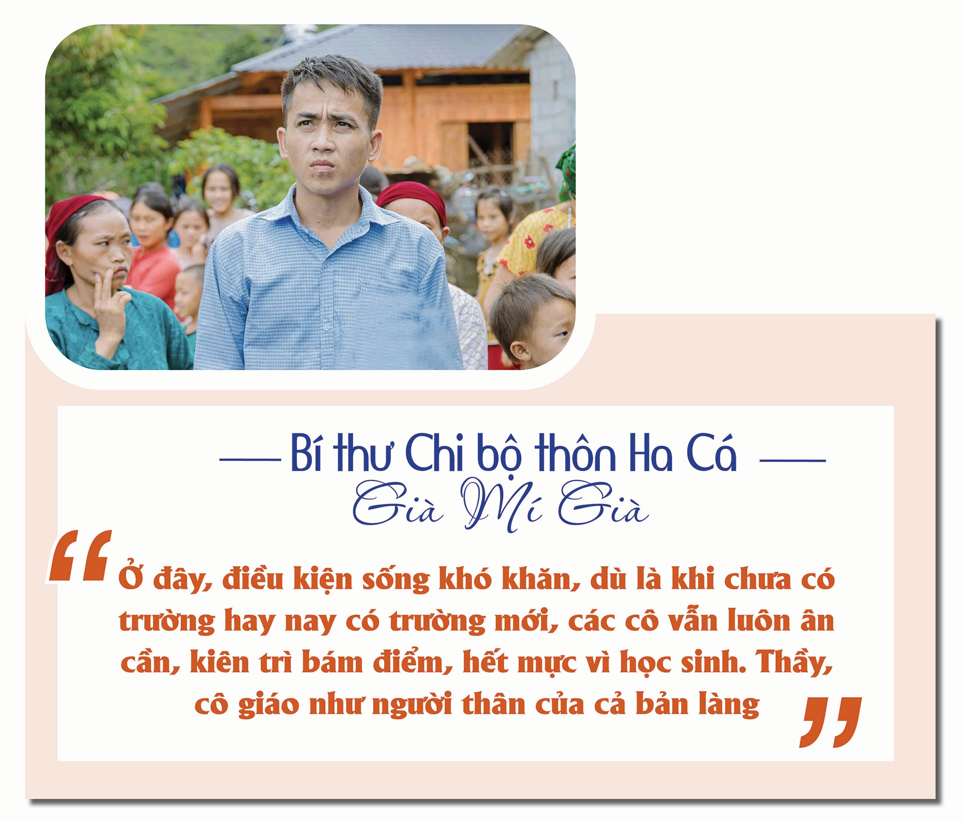 Ở Ha Cá, thôn đặc biệt khó khăn của xã Khâu Vai, nơi hơn 80% đồng bào người Mông sinh sống, người dân bản quen gọi cô giáo Giàng Thị Máy, giáo viên điểm trường Ha Cá là người con của bản. Bởi ngoài vai trò là người gieo chữ, cô Máy còn như người mẹ hiền, luôn lo lắng chở che cho những đứa học trò nhỏ nơi đây.