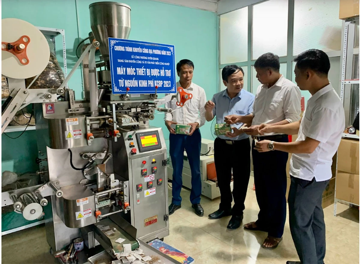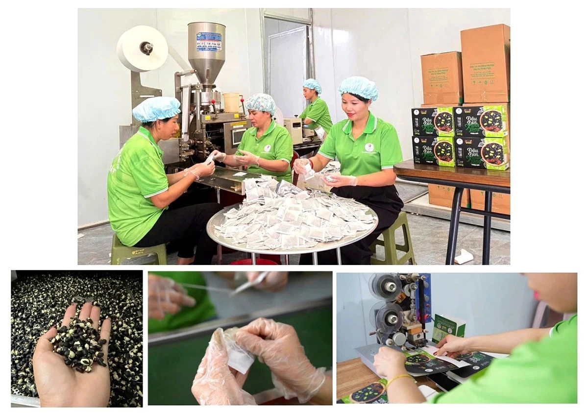 | Thiết bị dây chuyền sản xuất trà túi lọc từ hạt đậu đen của HTX nông sản hữu cơ Bình Minh, xã Yên Sơn. |