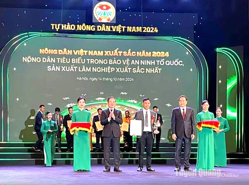 | Anh Nguyễn Công Sử, Giám đốc HTX Sử Anh, tổ 4, phường Mỹ Lâm, thành phố Tuyên Quang nhận Bằng khen công nhận nông dân xuất sắc năm 2024. |
