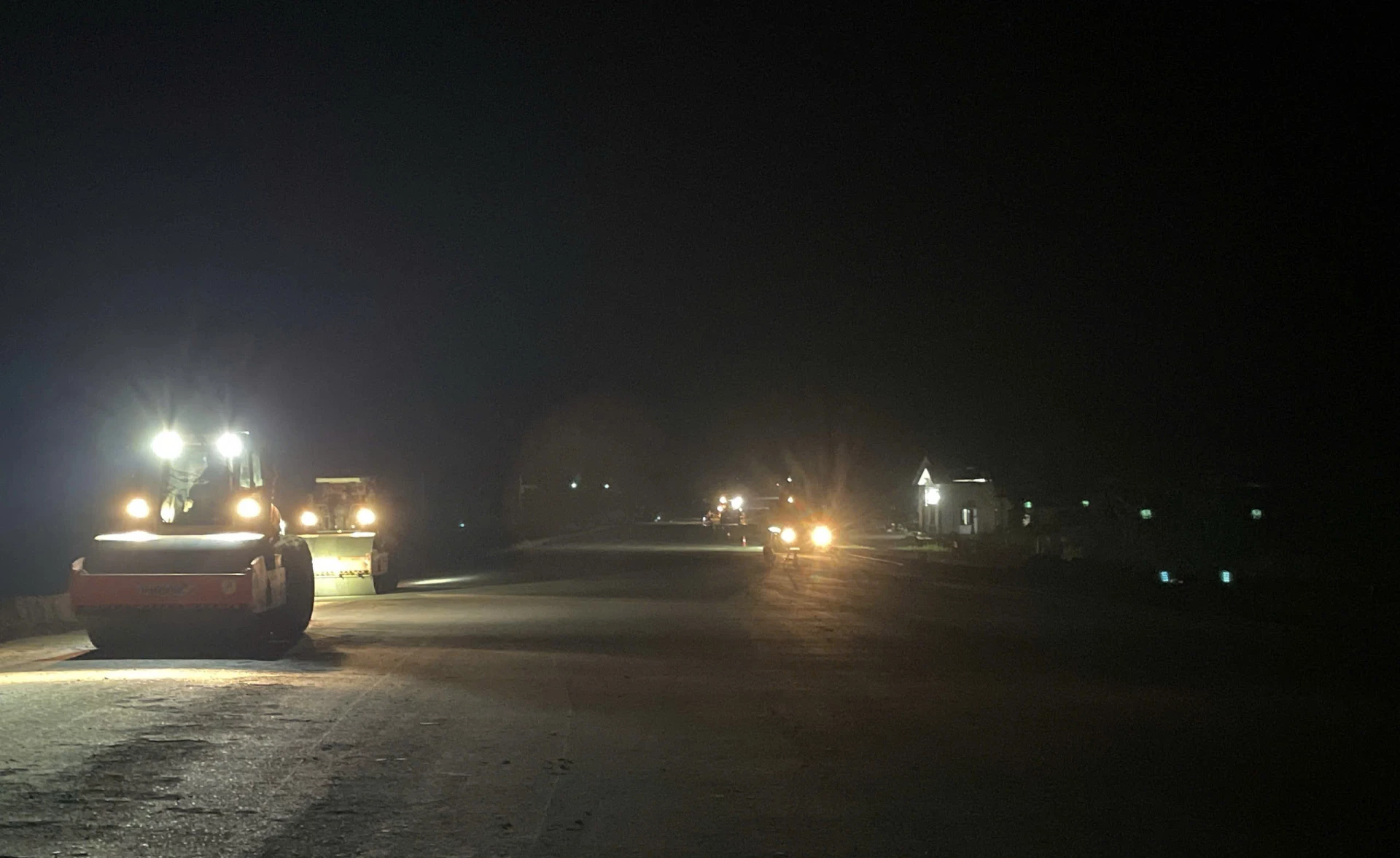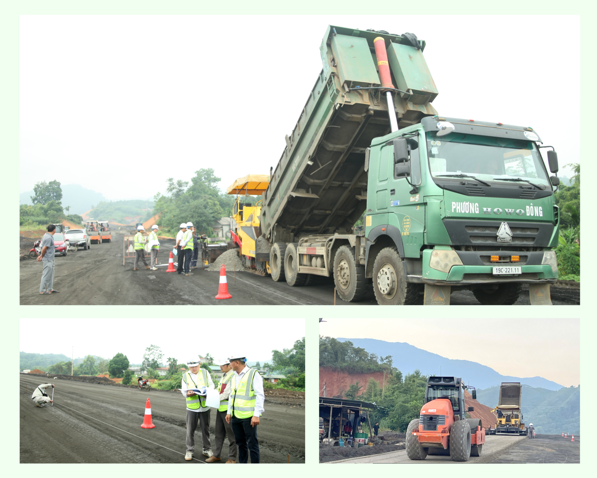 Mặc dù bị ảnh hưởng thời tiết, địa chất phức tạp và áp lực thi công, song với sự đồng hành của chính quyền địa phương, gói thầu tiếp tục triển khai đồng đều, hướng tới ngày hoàn thiện. Trên công trường thường xuyên duy trì 230 kỹ sư, công nhân, thợ vận hành thiết bị máy móc. Ban điều hành gói thầu chia thành 3 mũi thi công chính, cùng 5 mũi phụ ngày, đêm bám công trường xử lý taluy, nền đất yếu, vừa khẩn trương triển khai hạng mục cầu, nền, mặt đường. Một ngày làm việc kéo dài từ 7 giờ sáng đến 22 giờ đêm, công nhân được chia ca, vận hành máy lu, máy xúc, xe trộn bê tông hoạt động không ngơi nghỉ. Tất cả tạo nên nhịp độ hối hả nhưng vẫn bảo đảm an toàn và chất lượng kỹ thuật.