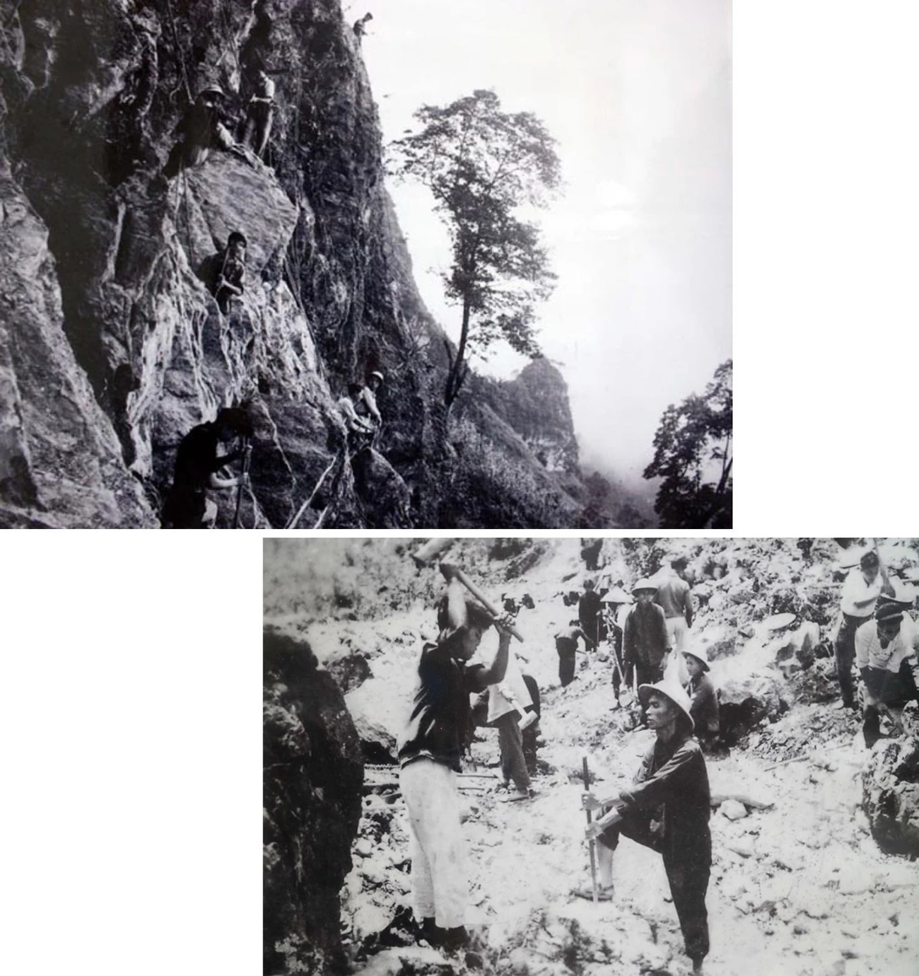 | Thanh niên xung phong mở đường Hạnh Phúc với các dụng cụ như cuốc chim, xà beng, đục, búa... (Ảnh tư liệu) |