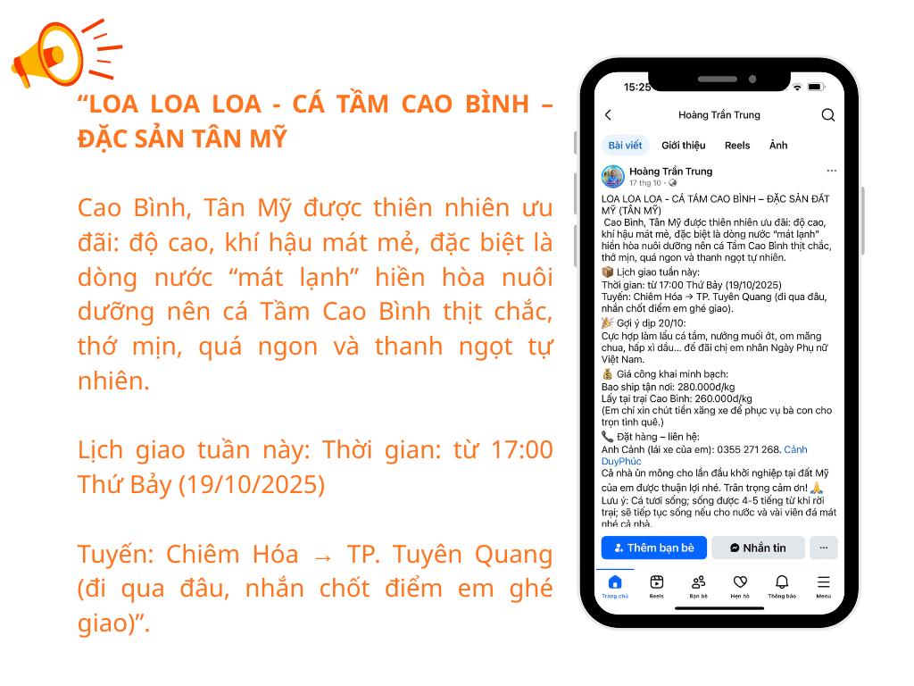 Nhiều lúc Bí thư Hoàng Trần Trung hài hước nhận mình là “Bí thư xã kiêm shipper Tân Mỹ!”. Thế nhưng, đằng sau những dòng status giản dị, vui vẻ ấy là cả một câu chuyện về tinh thần “chuyển đổi số nông thôn mới” – nơi mạng xã hội không chỉ là nơi kết nối, mà còn là “chợ phiên 4.0” giúp người dân bớt nỗi lo đầu ra.
